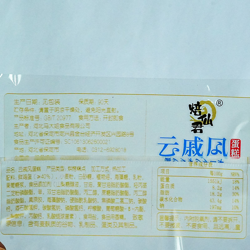 马大姐云戚风蛋糕早餐饱腹食品