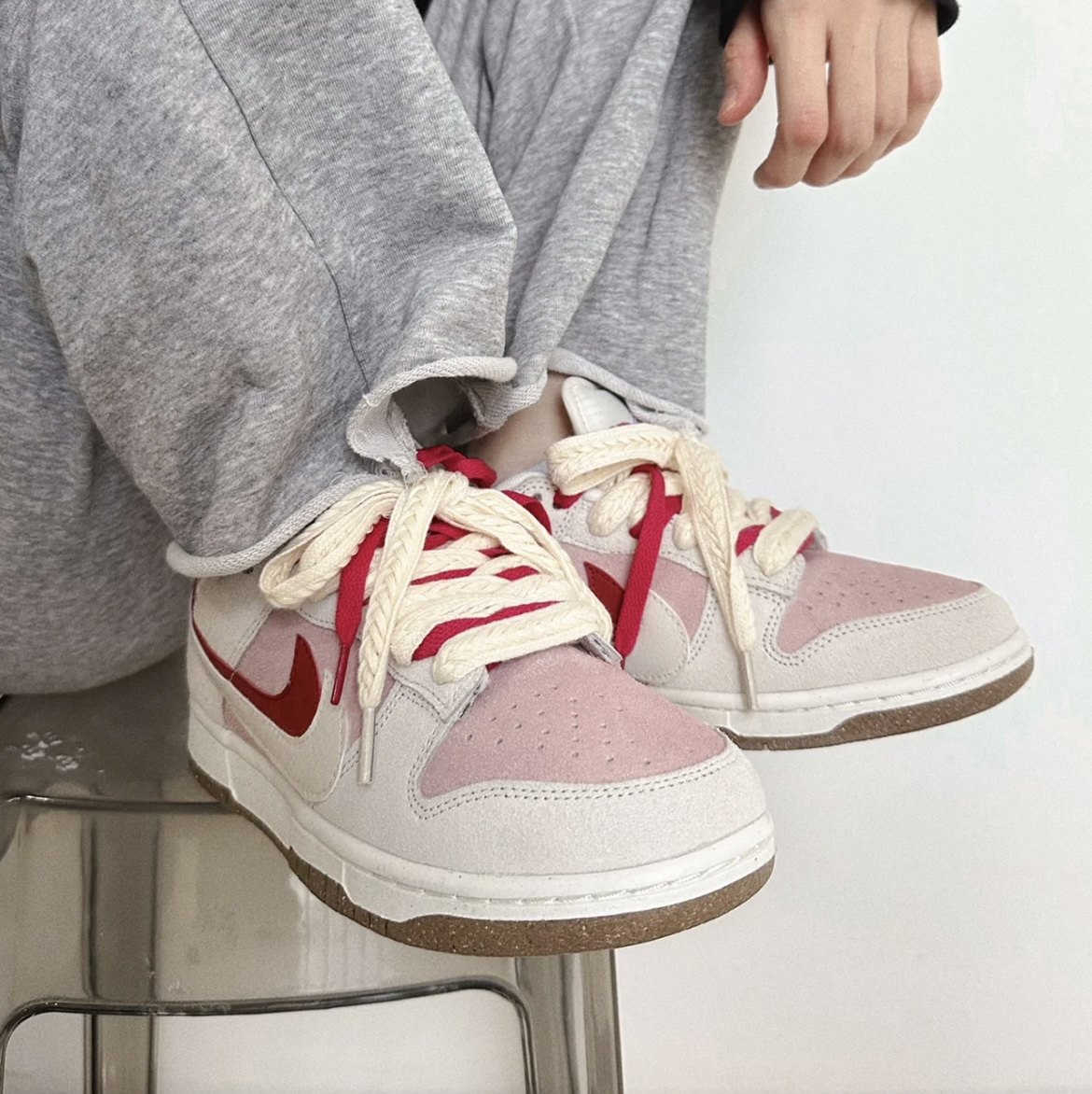 适配Nike Dunk Low 85灰白红双层Swoosh米色麦穗麻绳扁形af1鞋带