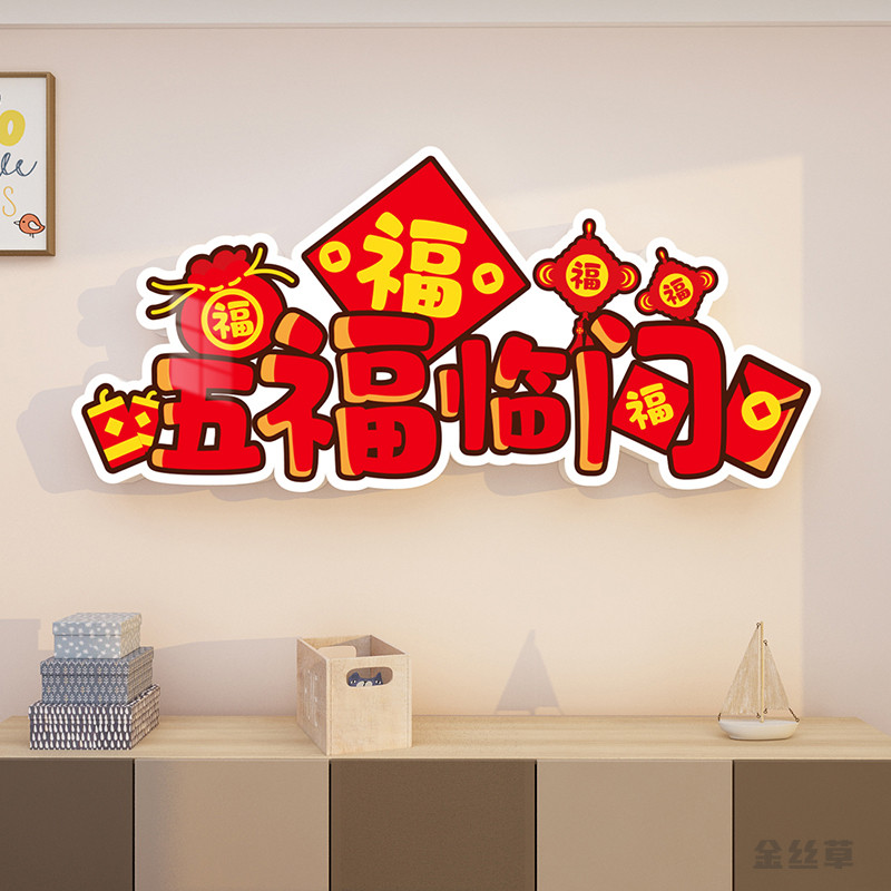 2024过龙新年装饰品入户玄关电视背景春节布置墙贴纸画墙面门挂件