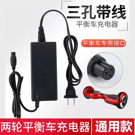 适用双轮平衡车充电器42V36V三孔插头圆孔头阿尔郎龙吟通用充电线