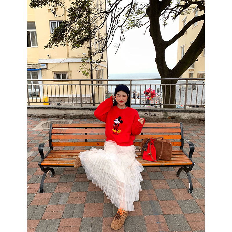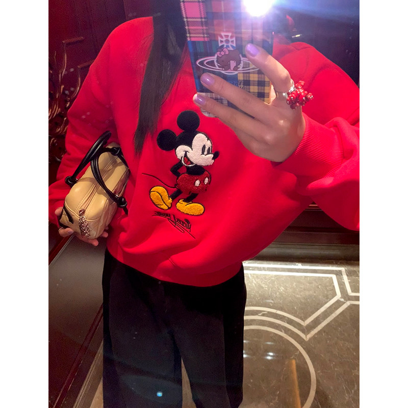 今屿花花红色加绒红色卫衣女