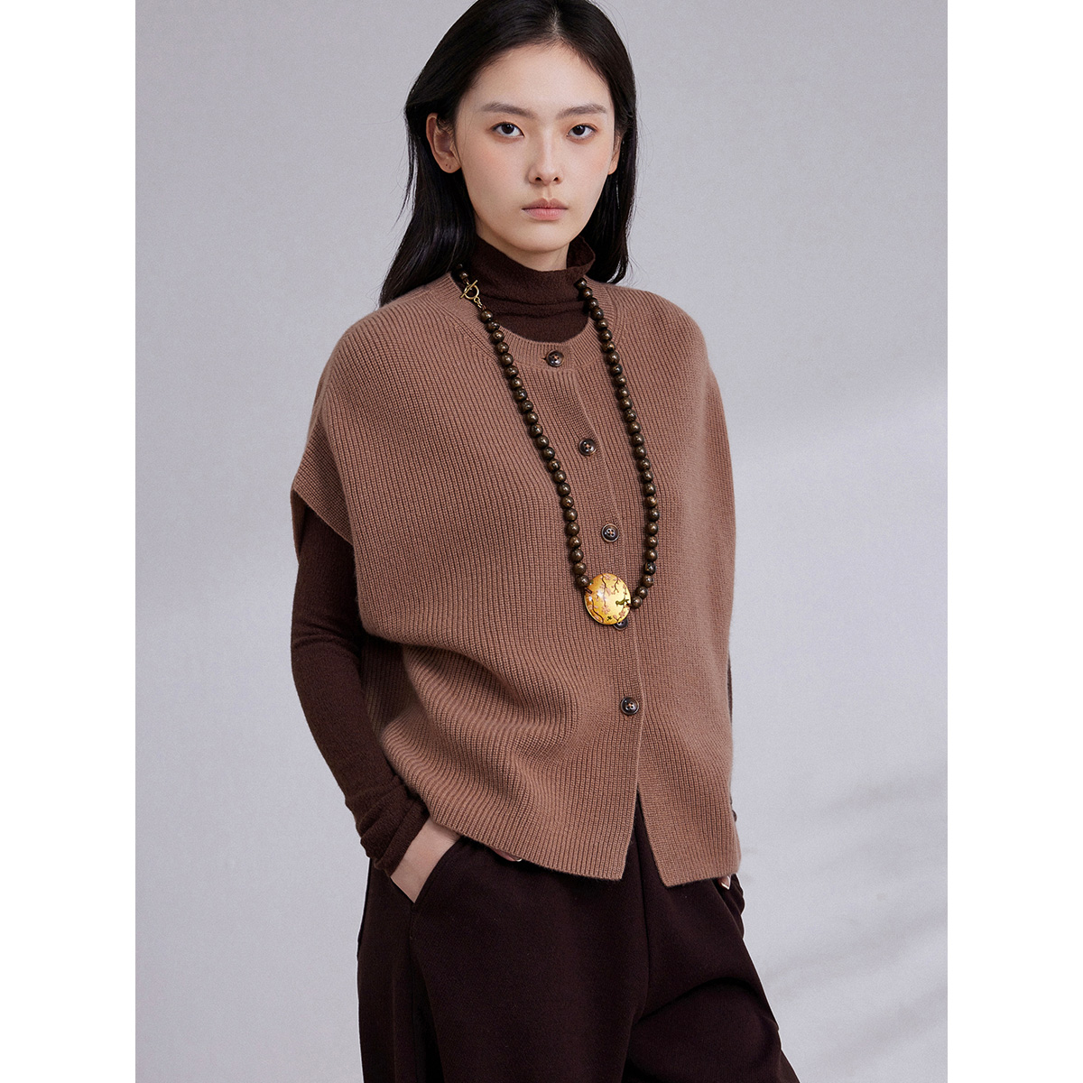 PUKKA 蒲牌秋冬新品羊毛针织开衫女文艺气质复古无袖毛衣外套上衣