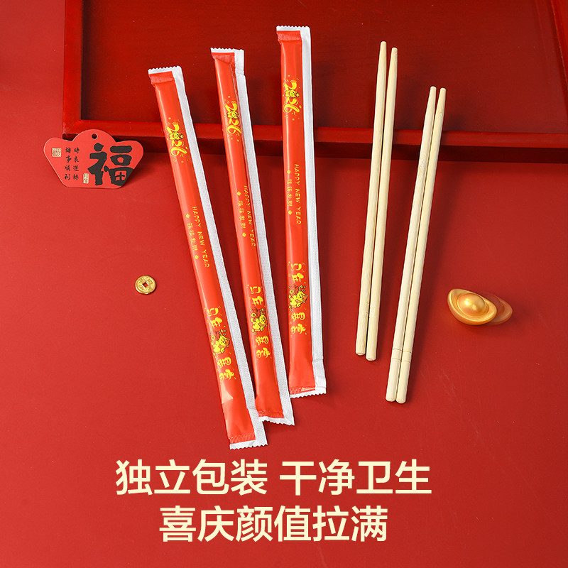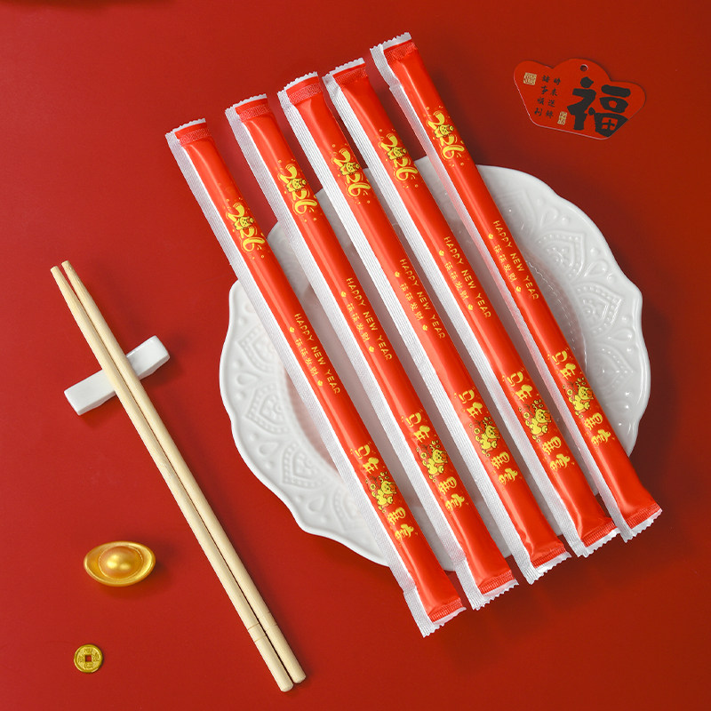 2026新款一次性筷子马年暴富款精选加长加粗竹筷高档包装家用商超