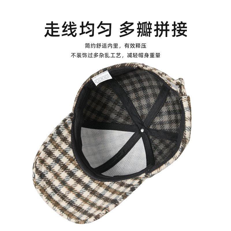 中老年千鸟格子帽子女秋冬季户外加厚棒球帽显脸小显年轻鸭舌帽