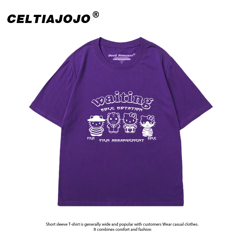 国潮ins小众卡通甜酷少女风oversize宽松粉色甜美短袖T恤上衣夏季