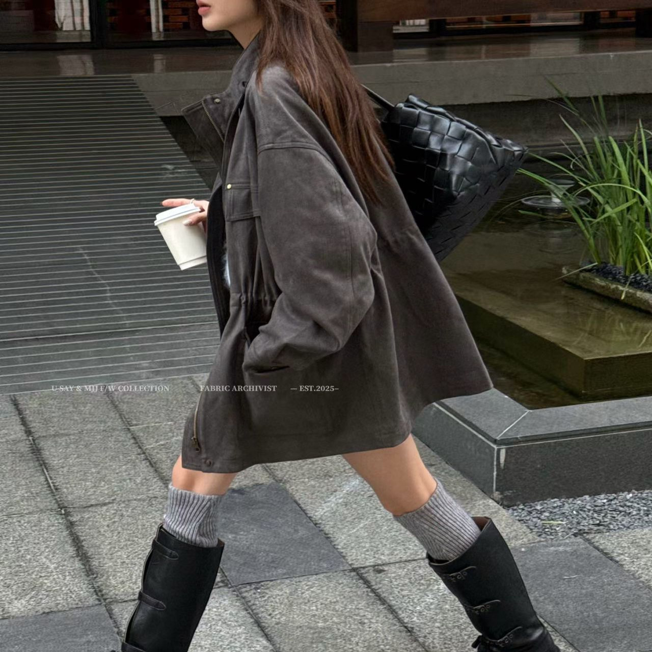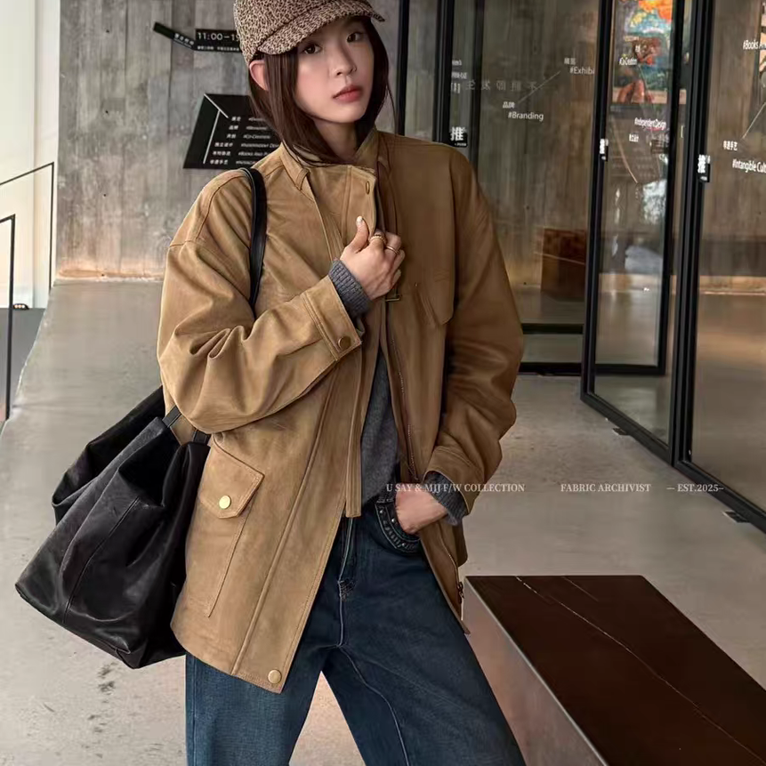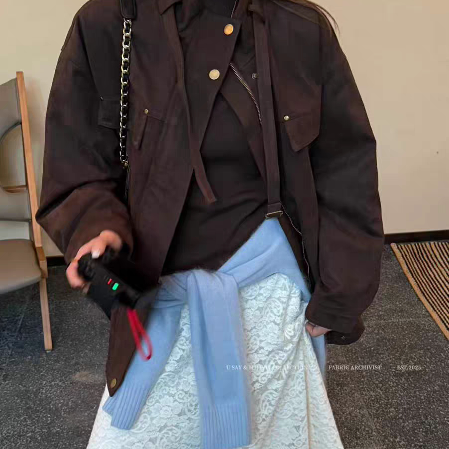 2025工装外套女韩版秋季新款麂皮绒休闲显瘦中长款风衣上衣