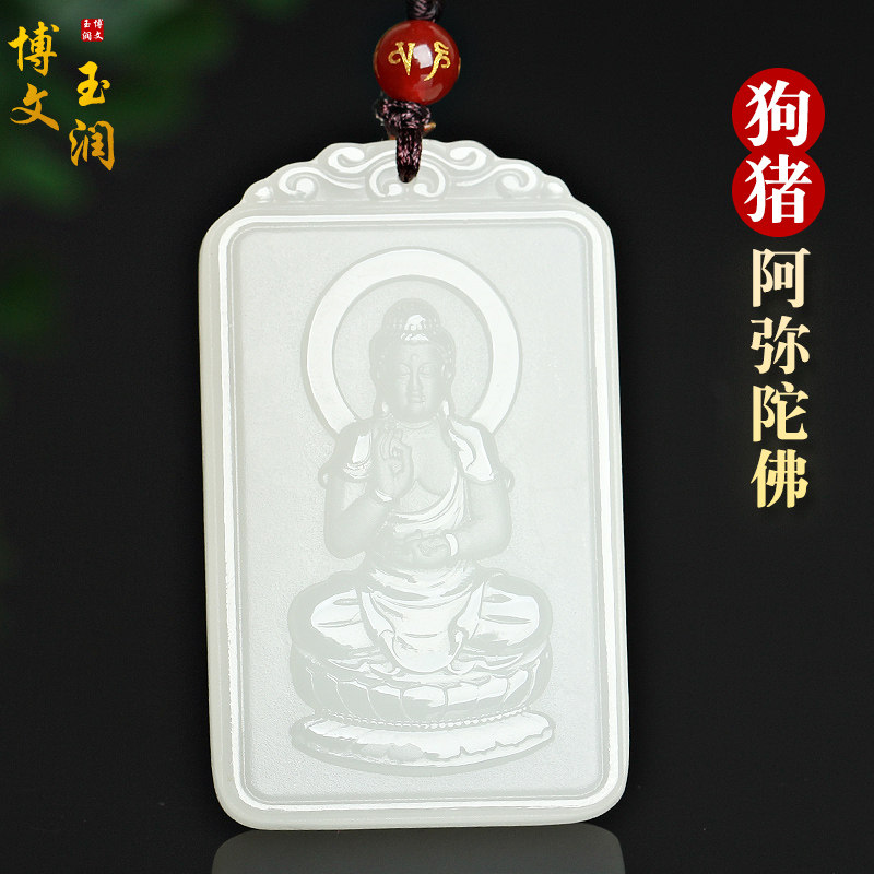 天然新疆和田玉生肖狗猪阿弥陀佛本命佛守护神吊坠男女款饰品玉佩