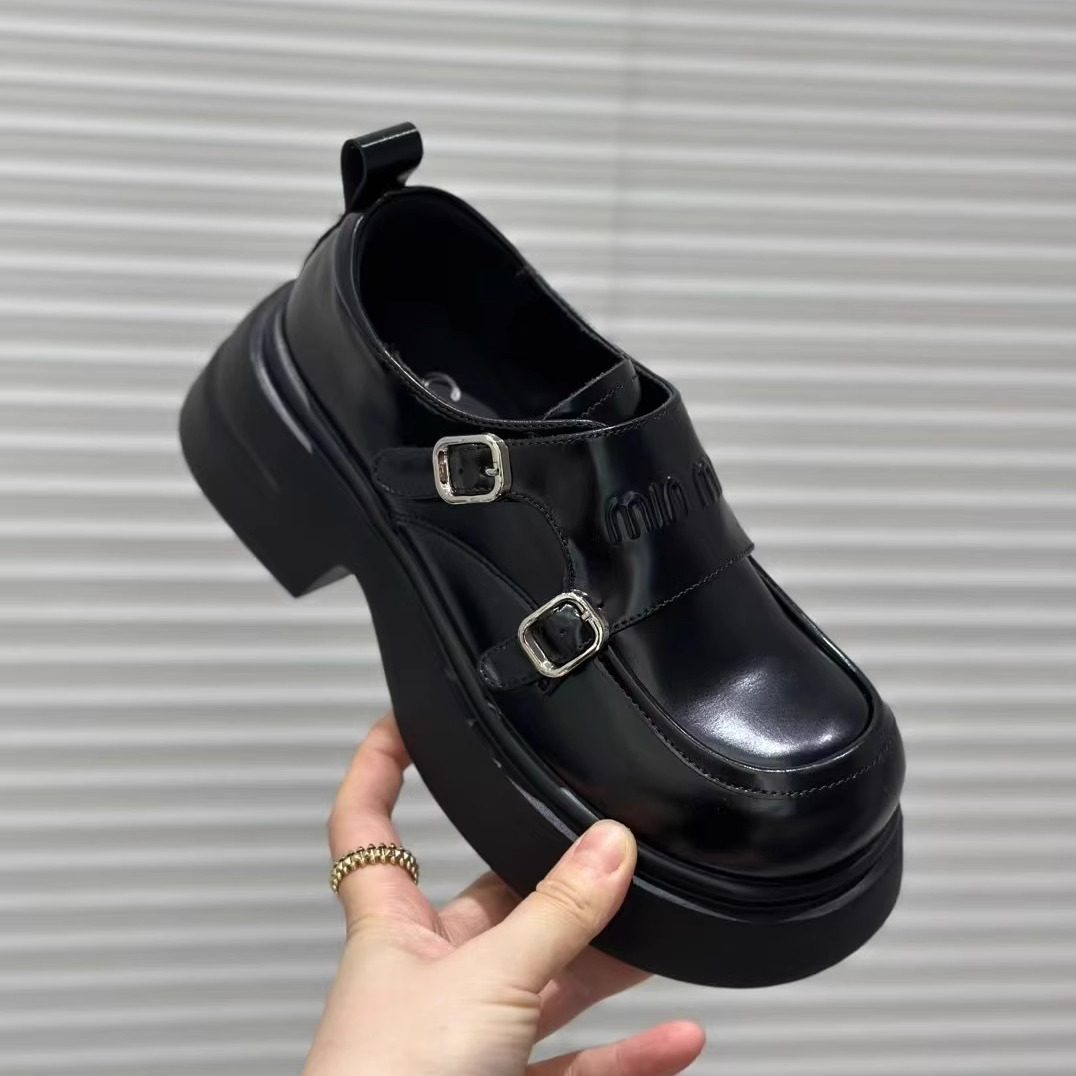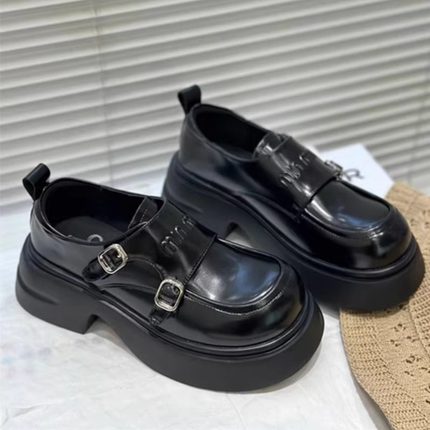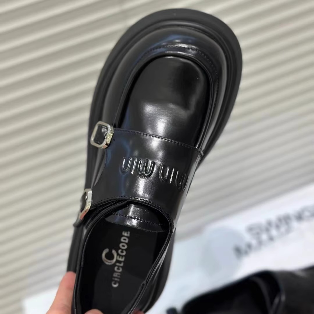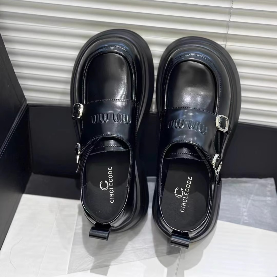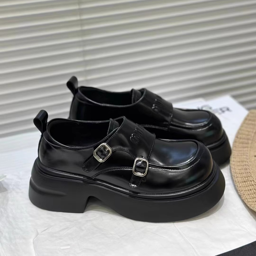 厚底英伦风小皮鞋女2024秋季新款真皮粗跟浅口单鞋皮带扣JK乐福鞋