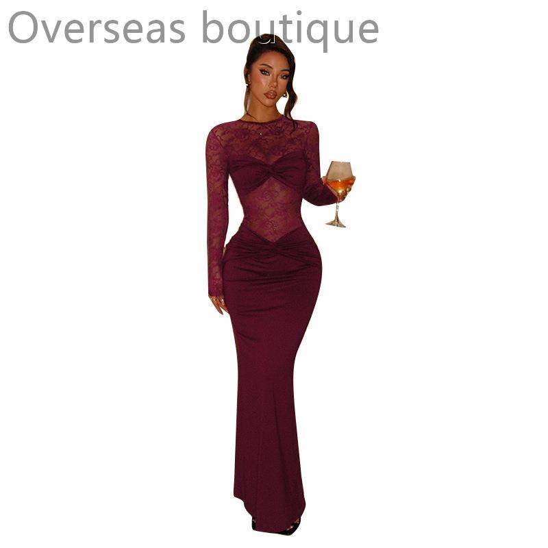 Hip hugging skirt, spicy girl long skirt长袖蕾丝连衣裙长裙女