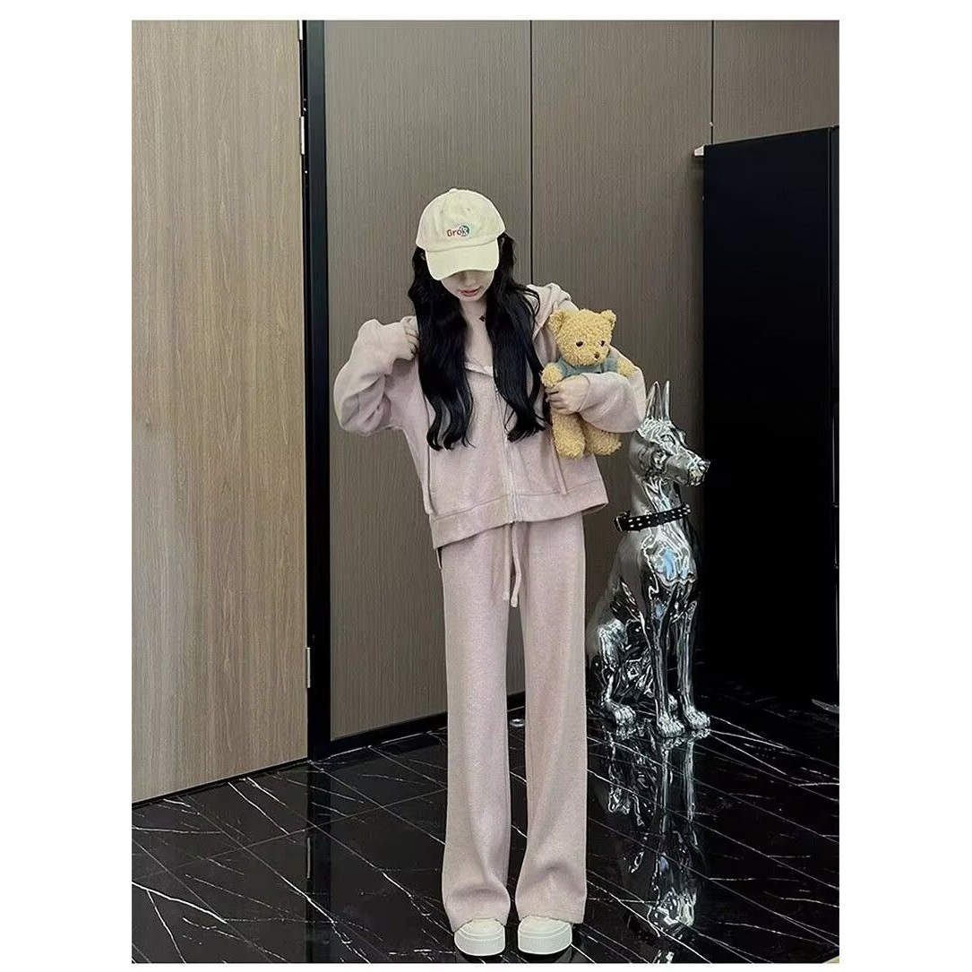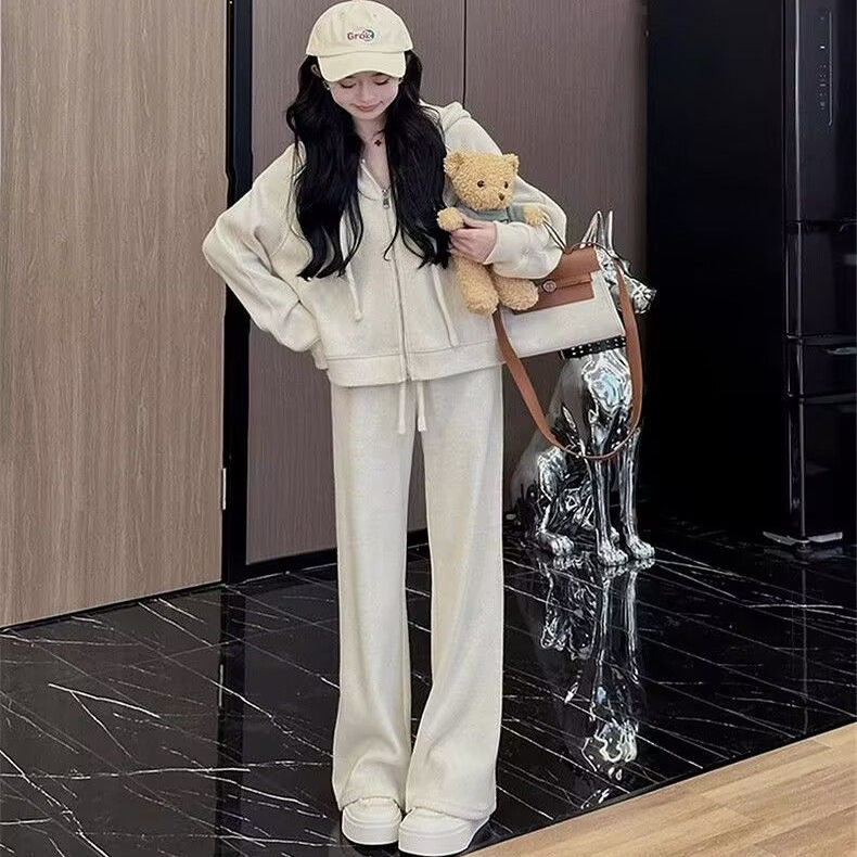 运动休闲套装女春秋季2025学生减龄时尚连帽开衫卫衣阔腿裤两件套