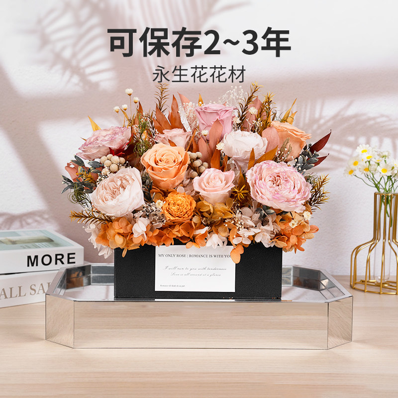 Joyflower金玉满堂永生花玫瑰真花束 新婚结婚礼物新年装饰摆件