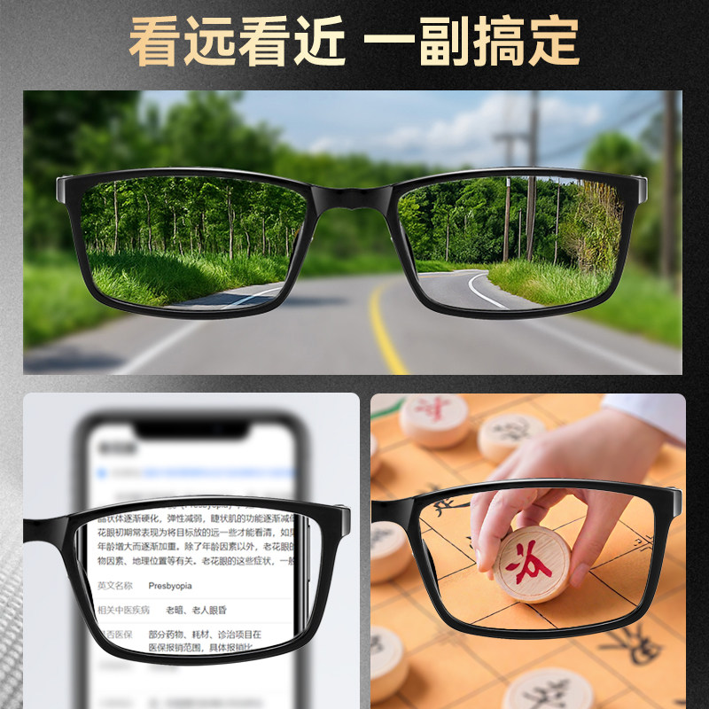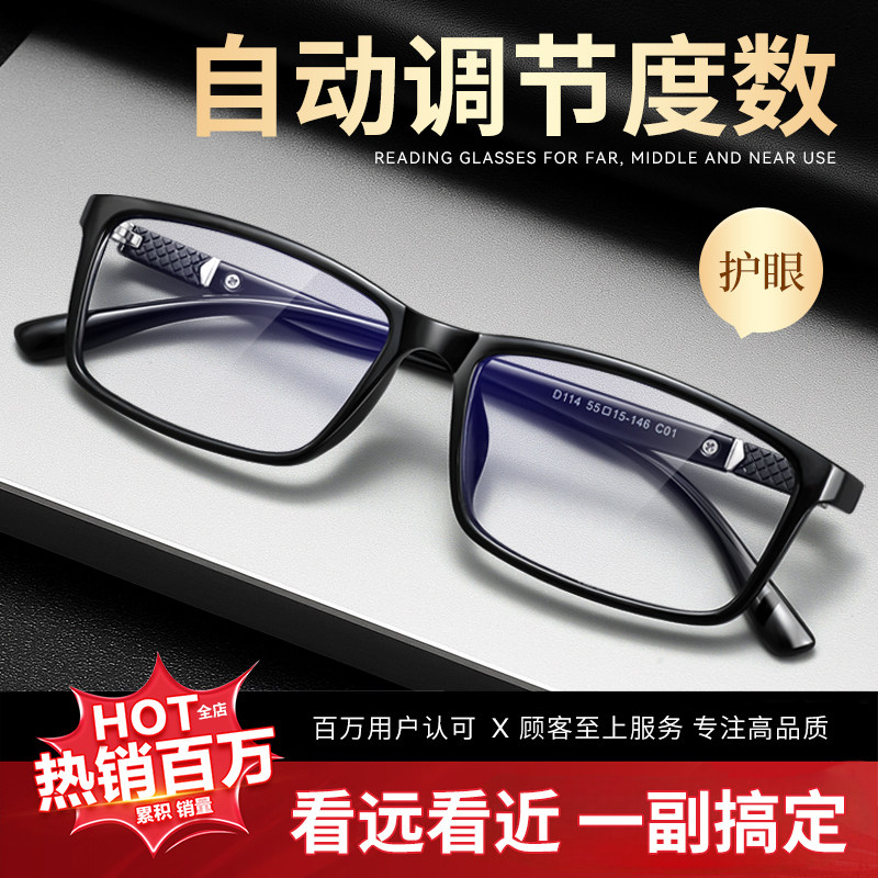 远中近三用老花眼镜男款智能变焦自动调节度数男士高档正品旗舰店