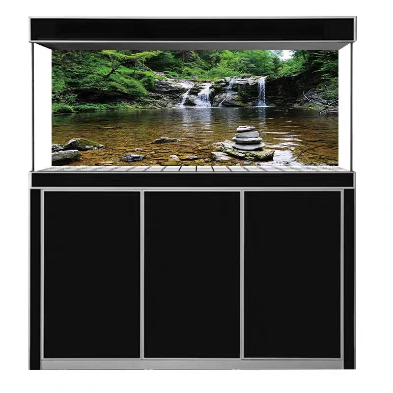 鱼缸背景纸画高清图3d立体壁纸高山流水细水长流风景山水系列