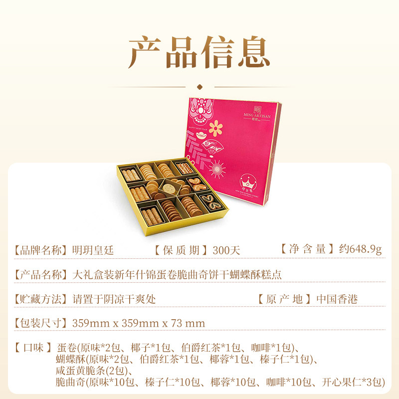 明玥皇廷玥之尊蛋卷脆曲奇饼干蝴蝶酥新年大礼盒香港特产伴手礼