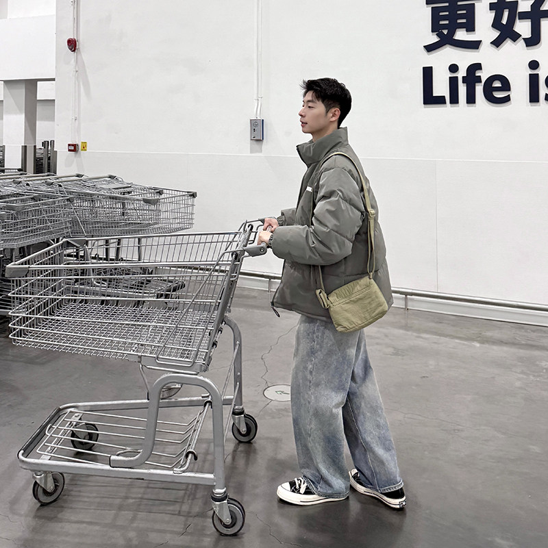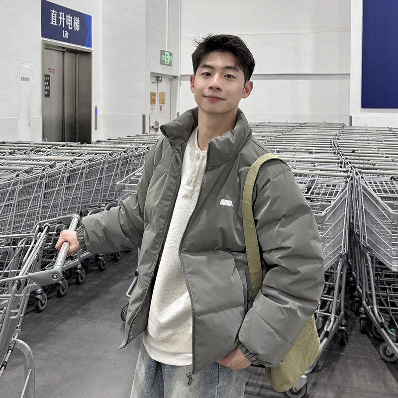 纯色立领夹克反光羽绒服冬季男2026新款外套上衣宽松棉服加厚保暖