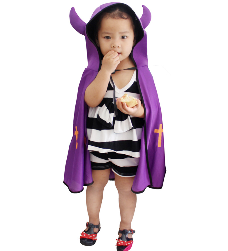 万圣节儿童服装男女童牛角披风演出服饰恶魔斗篷亲子成人南瓜衣服