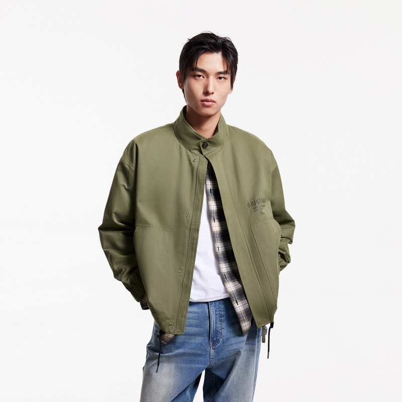 杰克琼斯男装夹克 外套男春季宽松立领休闲刺绣印花工装男装春