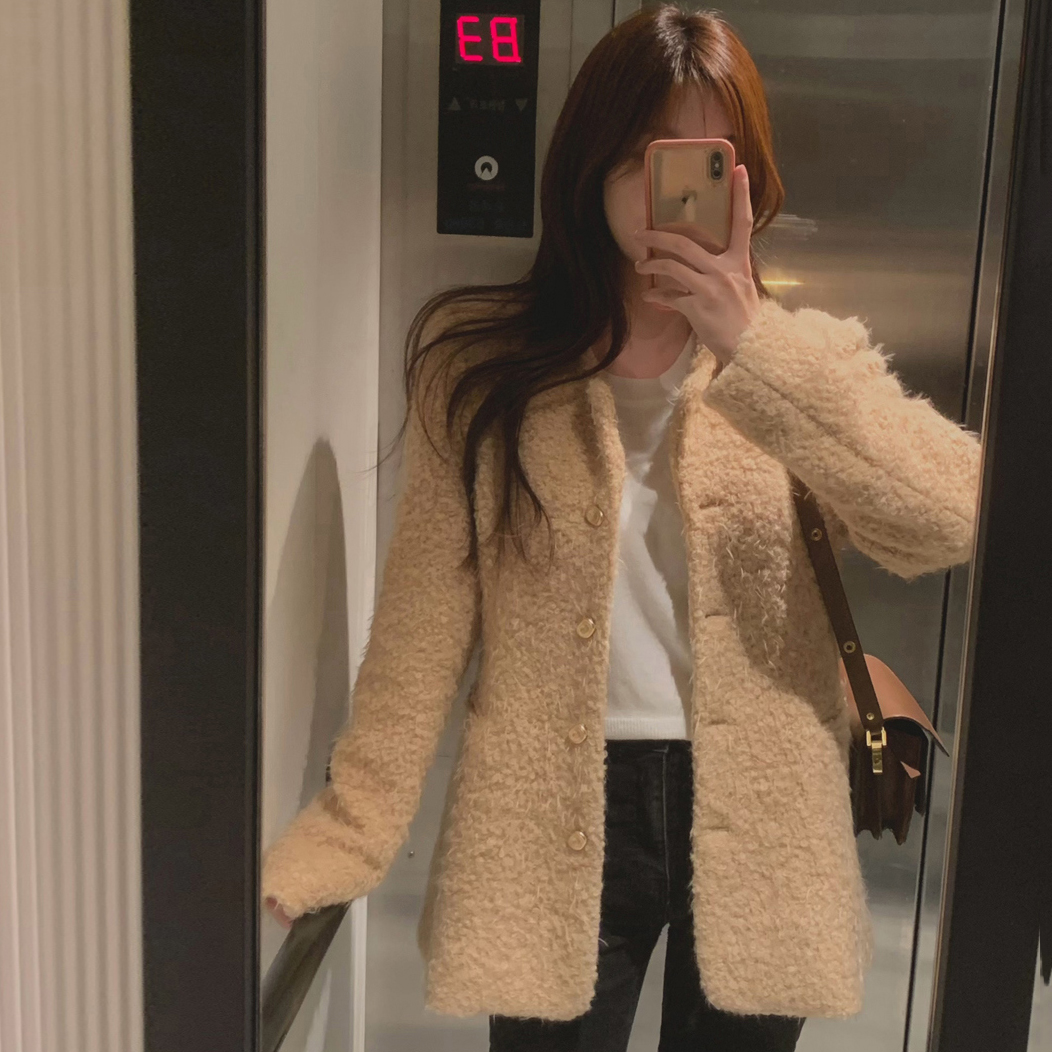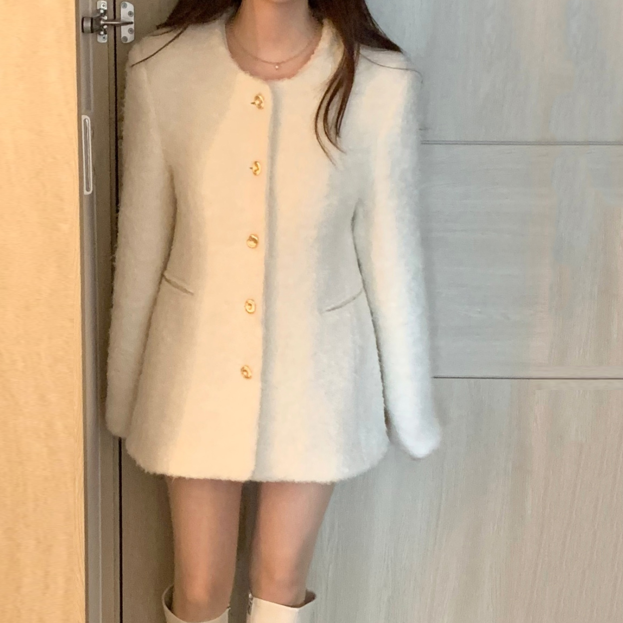 尺寸已更新 韩剧女主氛围感圆领单排扣收腰显瘦毛呢外套大衣