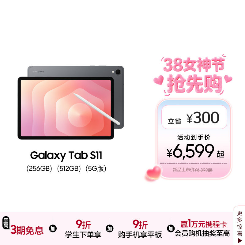 【新品享3期免息】Samsung/三星 Galaxy Tab S11 大屏智能追剧游戏学习网课办公2025新款平板电脑