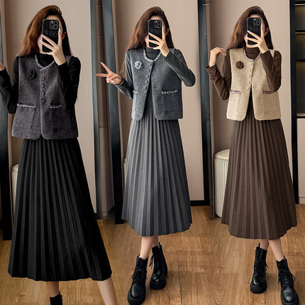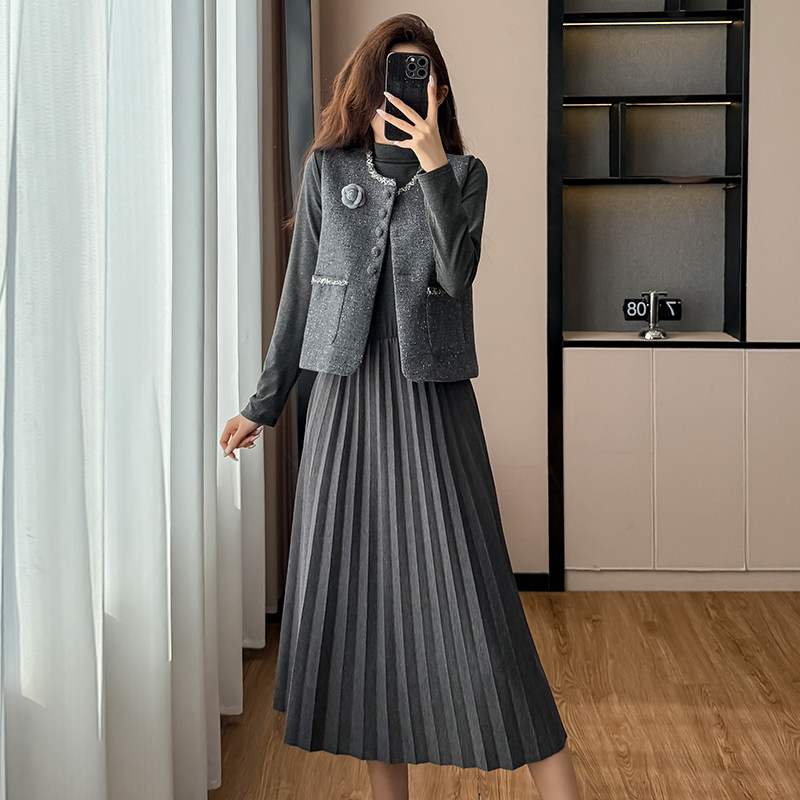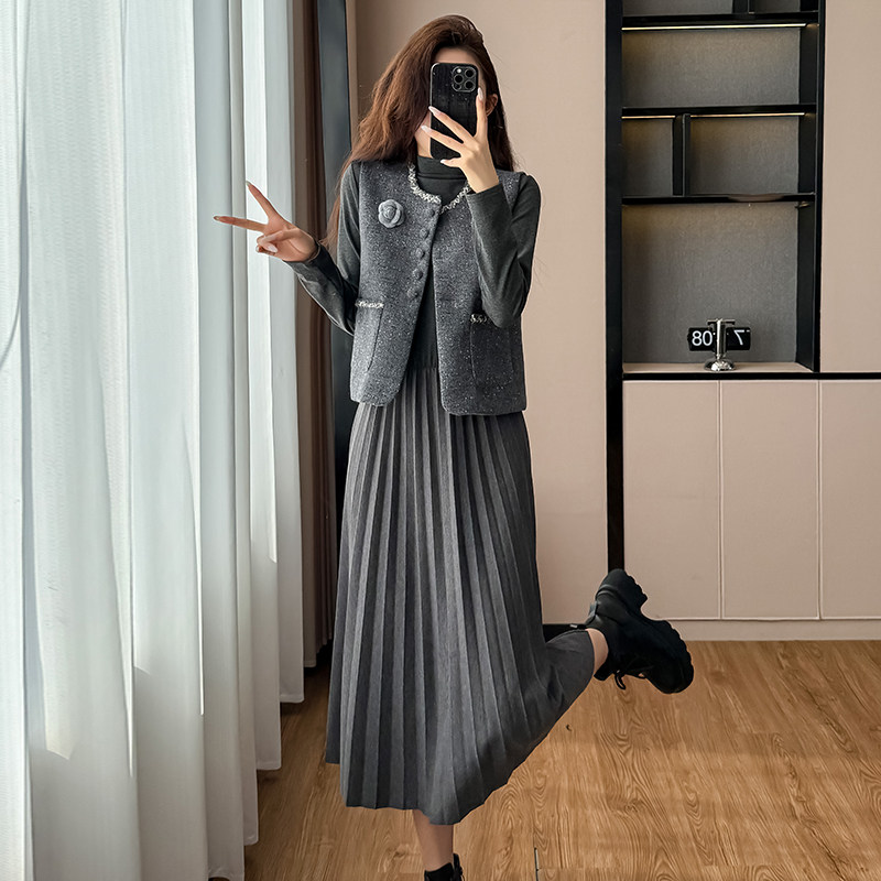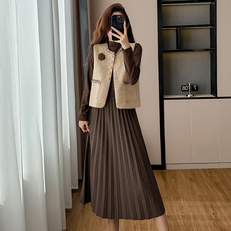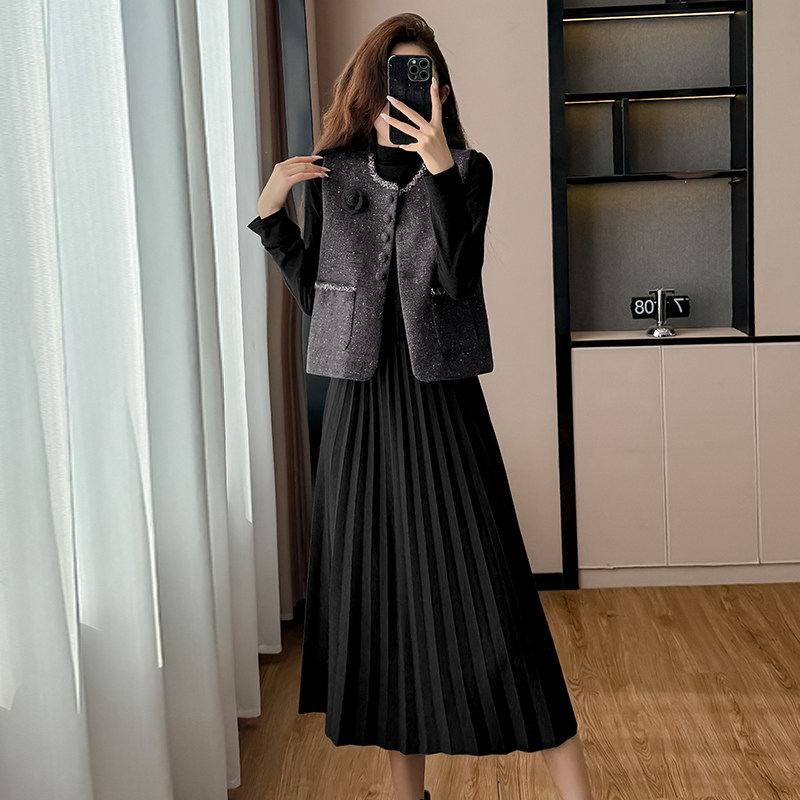 2025秋冬韩系搭大衣的打底裙百搭背心马甲显瘦打底裙长裙两件套