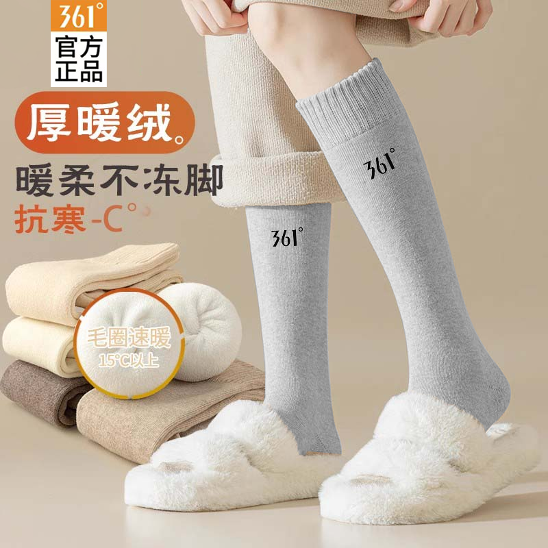 361正品冬季女袜保暖小腿袜加绒加厚长筒袜子毛圈保暖休闲高筒袜