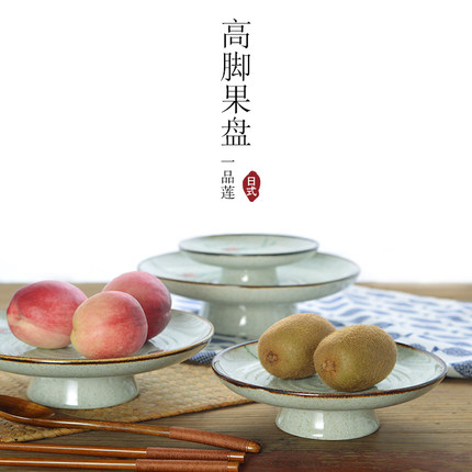 陶瓷高脚水果盘莲花圆形贡品甜品蛋糕下午茶点心料理碟盘子供佛盘
