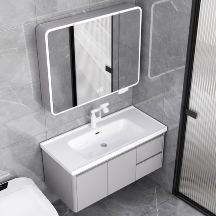 防潮蜂窝铝浴室柜圆角设计陶瓷盆