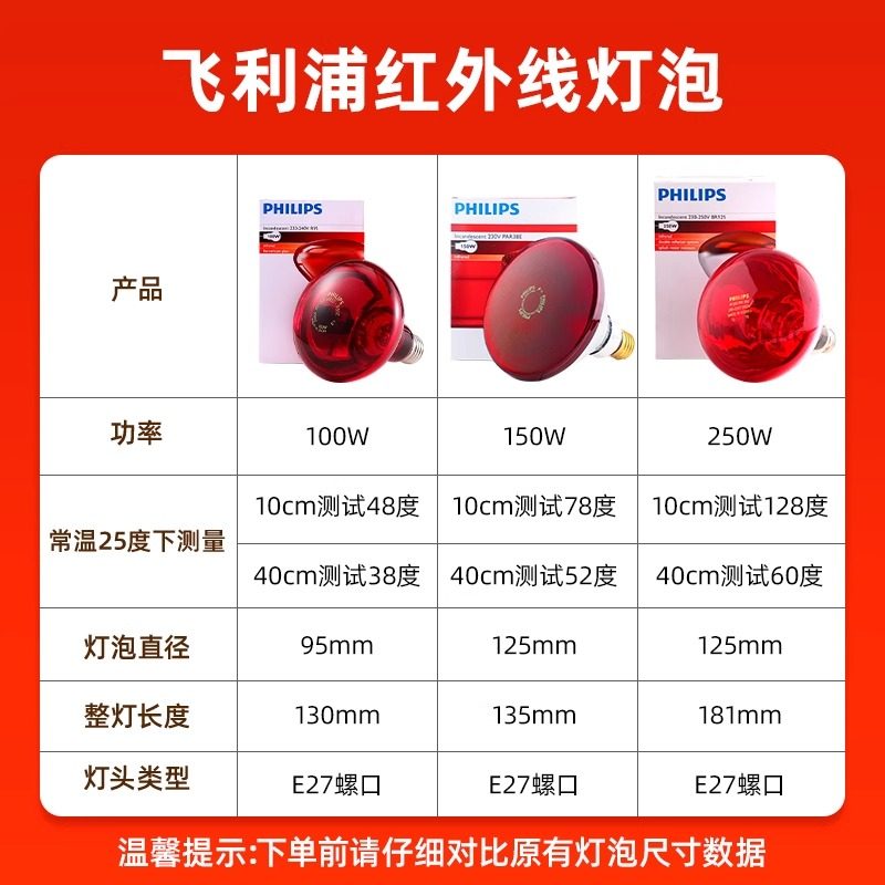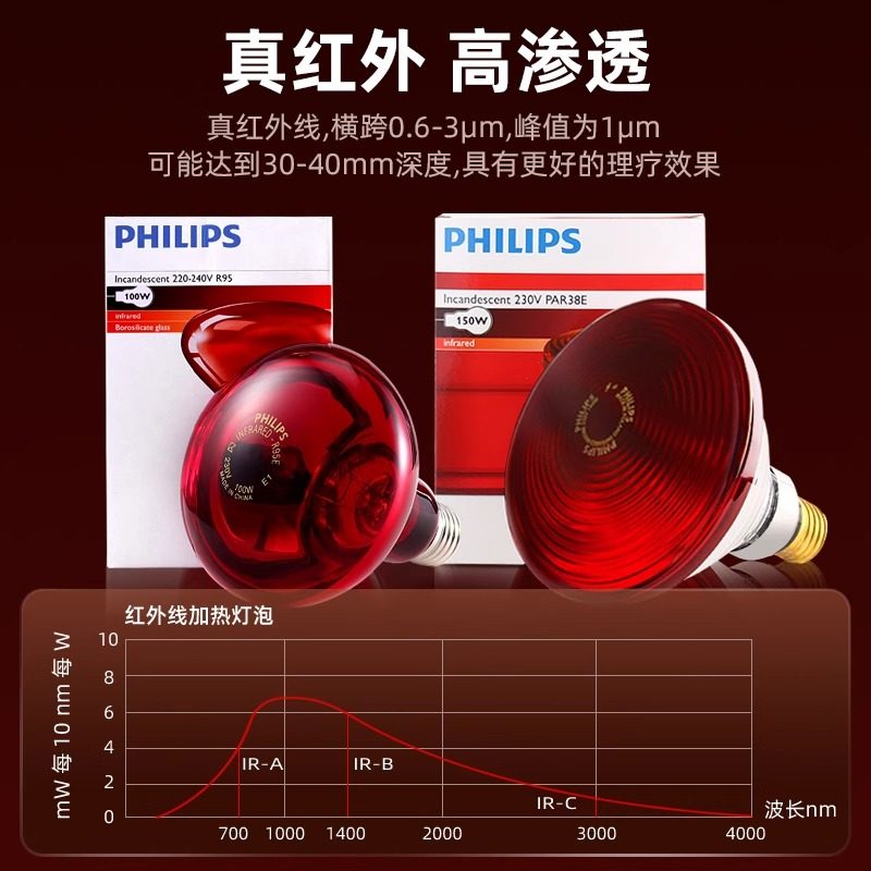 飞利浦红外线灯泡理疗美容院烤灯取暖远红外电烤灯泡100W150W250W