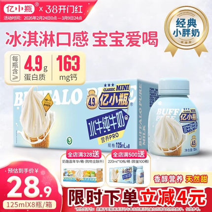 亿小瓶水牛纯牛奶125ml*8瓶