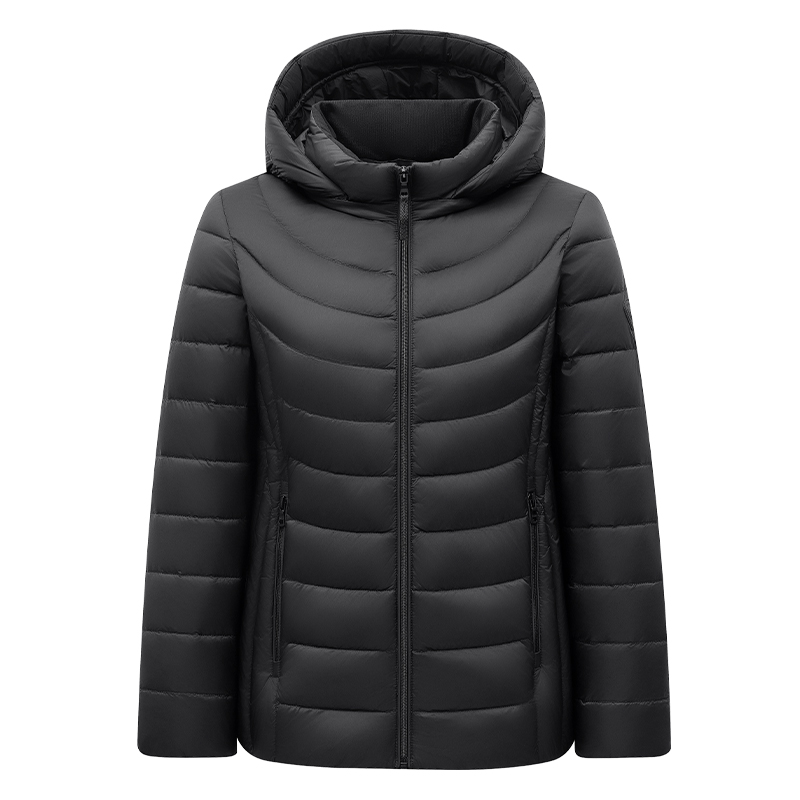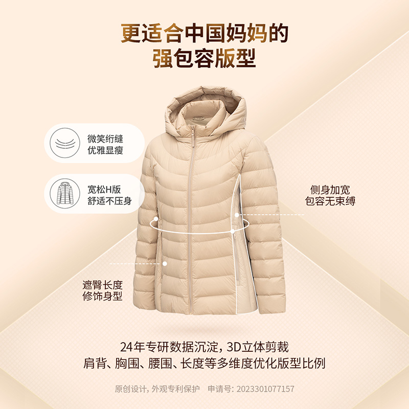 坦博尔2025冬季羽绒服女短款妈妈装可脱卸帽轻薄保暖休闲外套6256