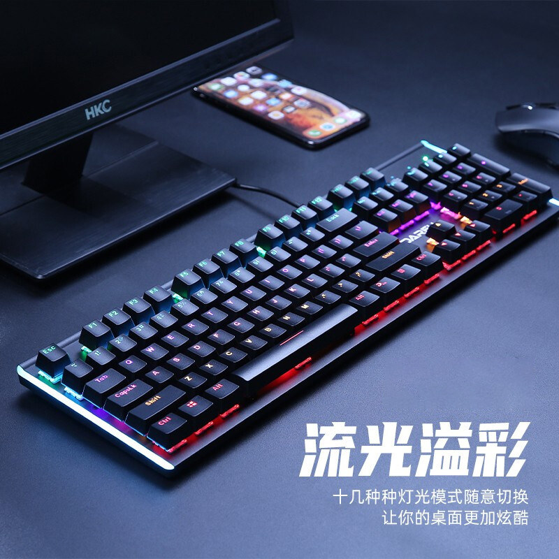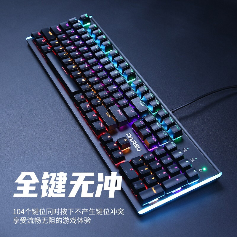 达尔优牧马人机械键盘鼠标套装青轴红茶轴游戏有线办公家用104键
