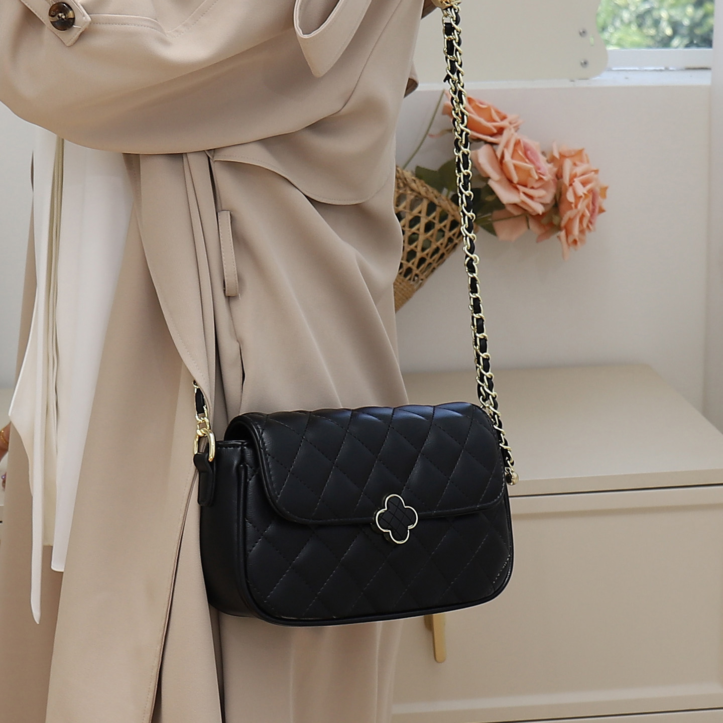 菱格链条包2025秋冬新款时尚百搭斜挎包精致小香风通勤单肩女包