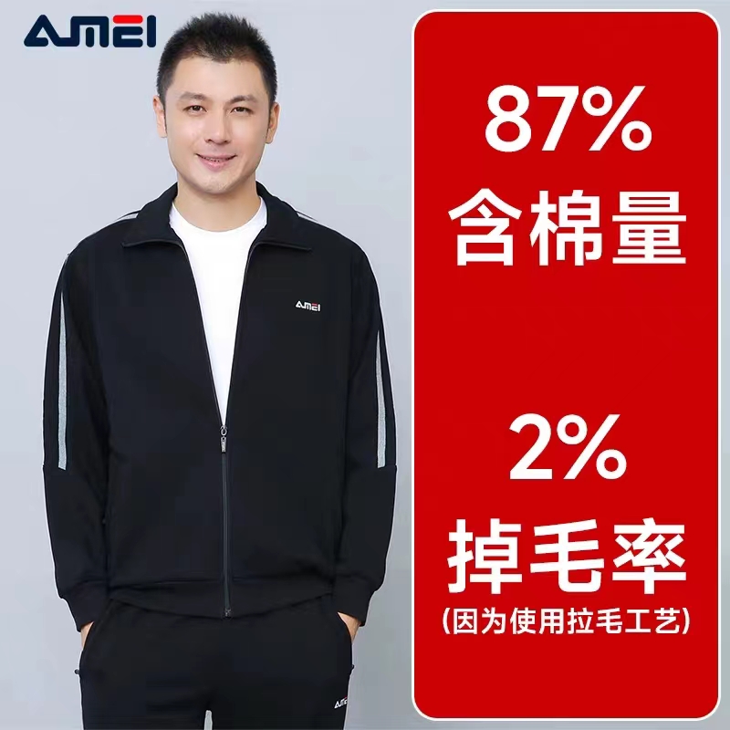 鲁美运动服套装男春秋大码开衫休闲外套中年爸爸装夹克上衣运动裤