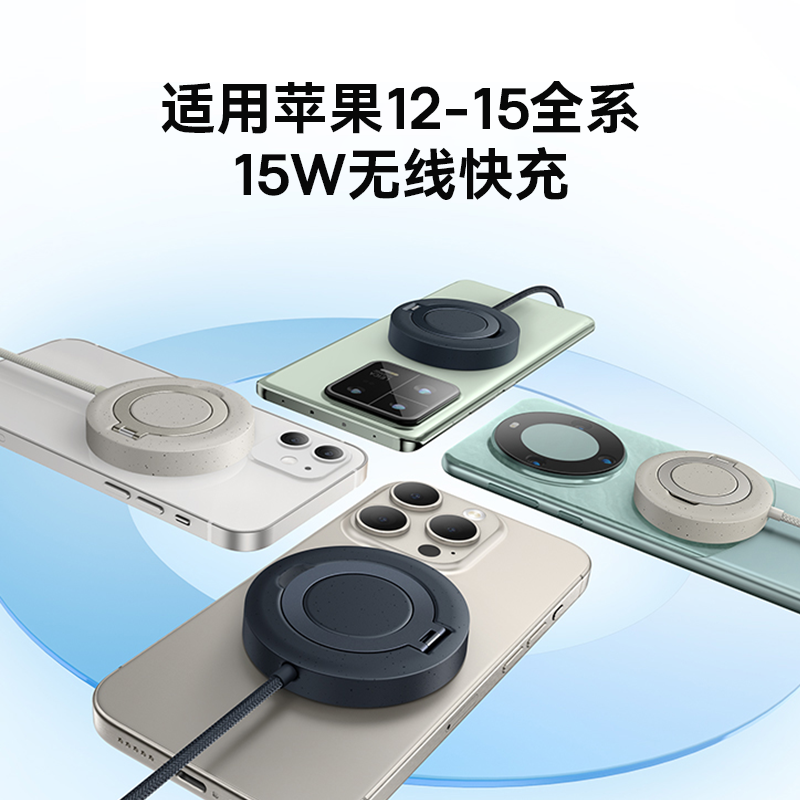 倍思Qi2磁吸无线充电器15W适用苹果15promax快充magsafe手机耳机iPhone14mini磁吸支架桌面充电底座充电线