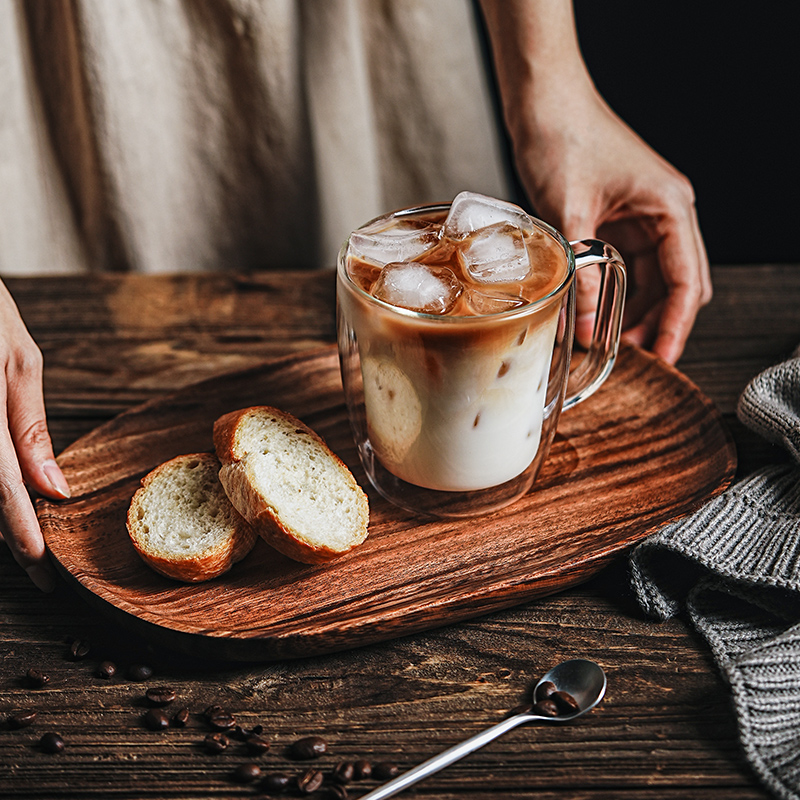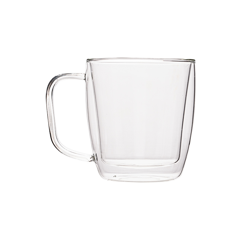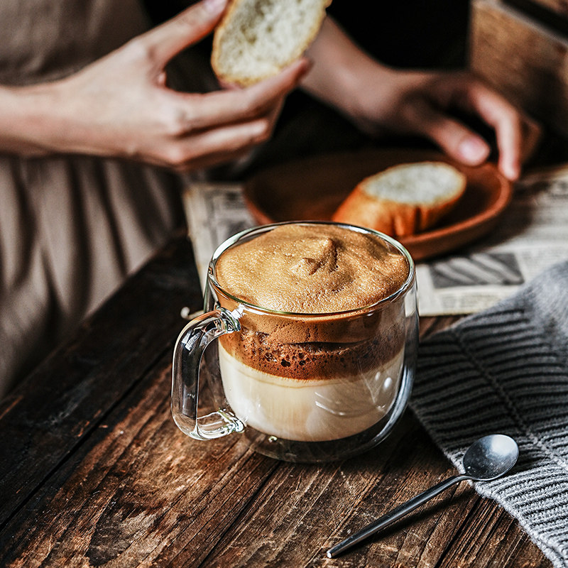 大容量双层玻璃杯咖啡杯带把手耐热马克杯高颜值女生水杯牛奶杯子