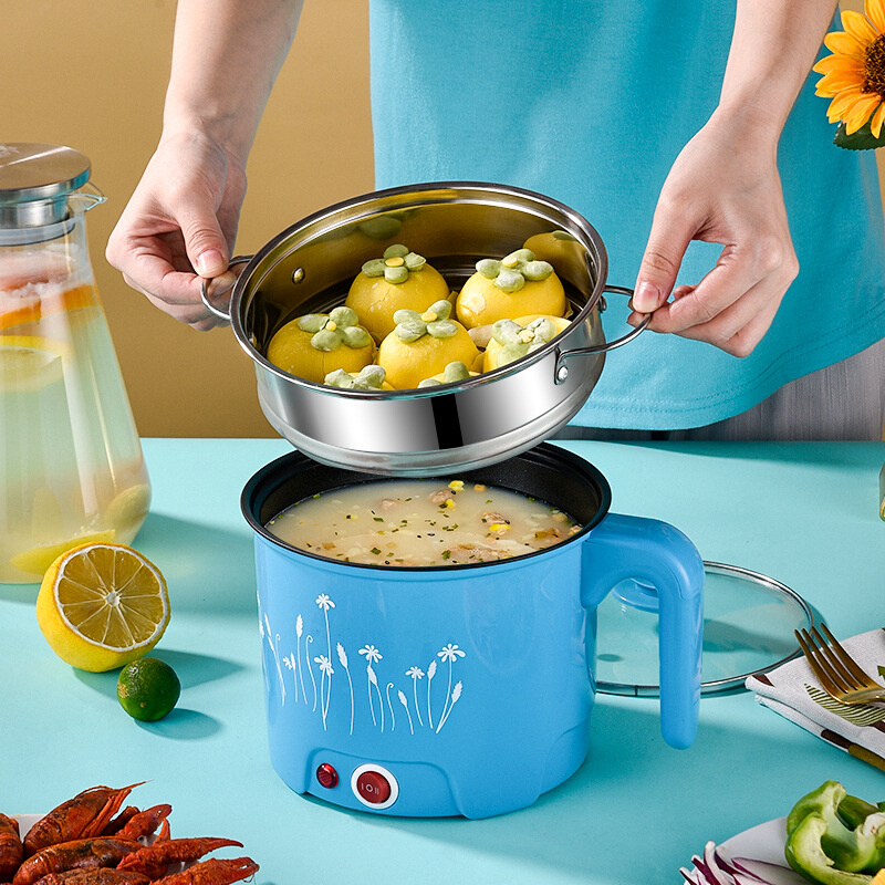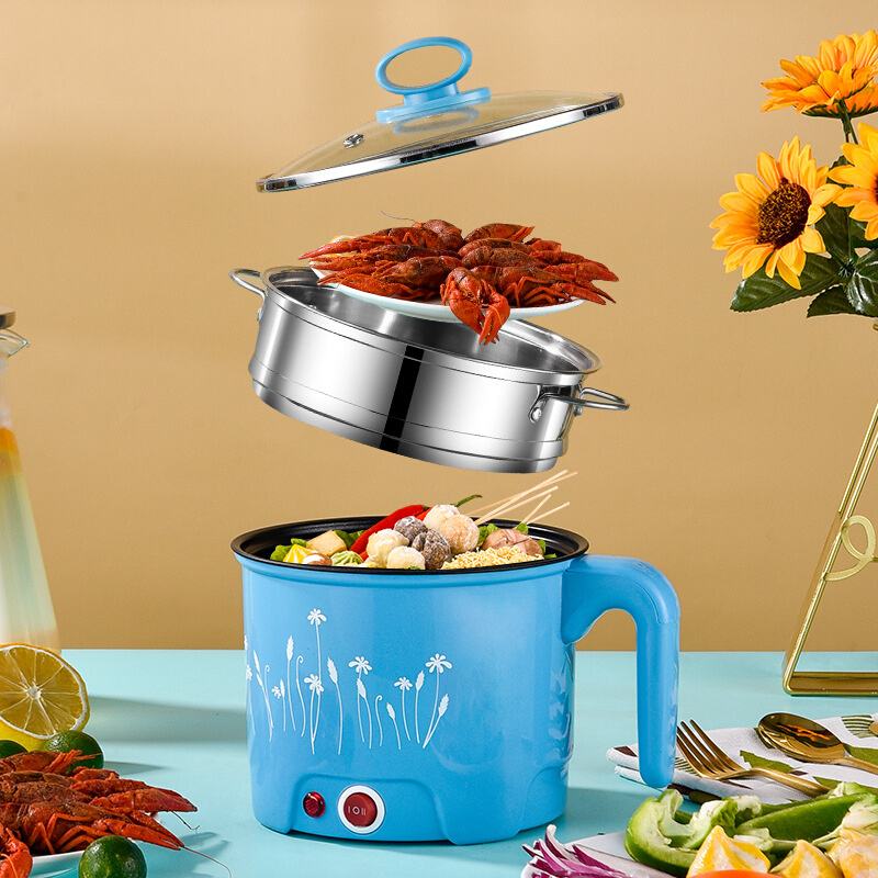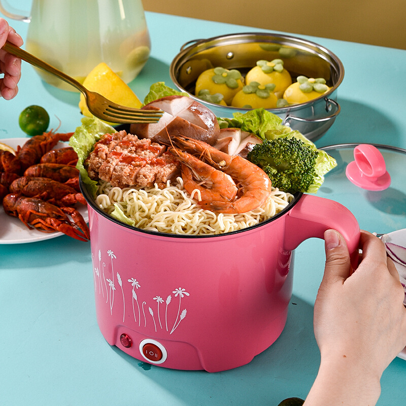 多功能旋钮快慢电煮锅学生宿舍迷你不锈钢煮面锅家用不粘电火锅