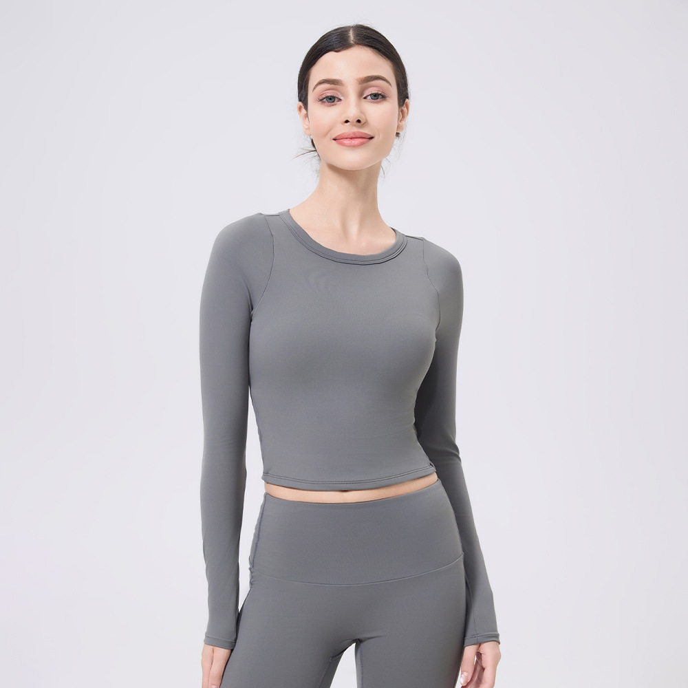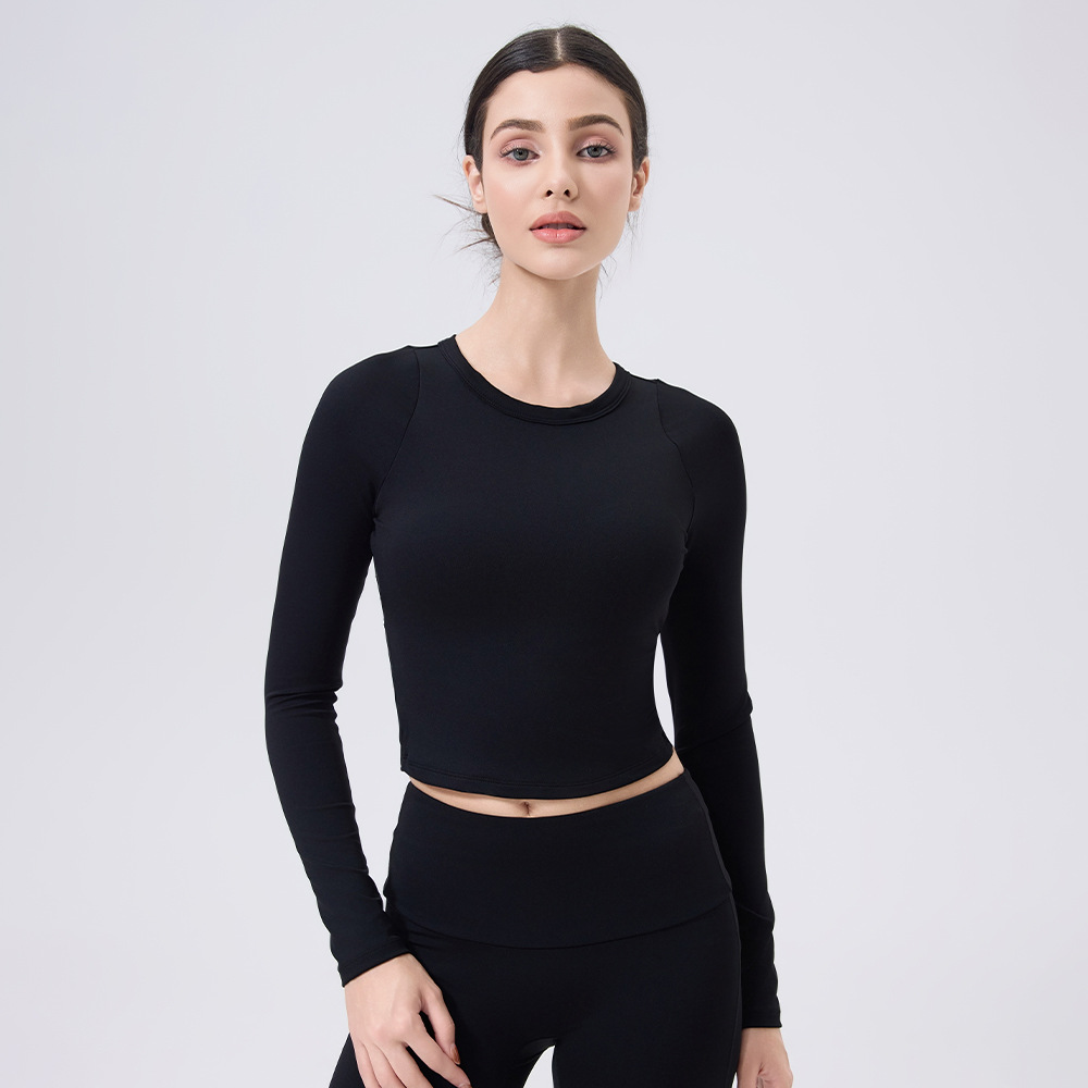 带胸垫云感美背纽结镂空运动T恤女长袖瑜珈服上衣速干显瘦健身衣