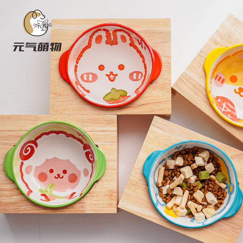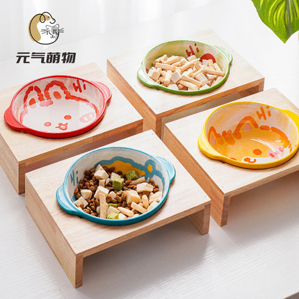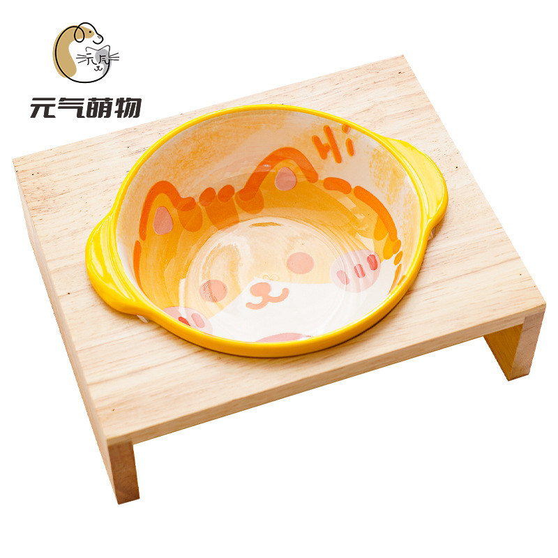 陶瓷木架猫碗防打翻猫咪水碗护颈猫食盆狗碗防黑下巴宠物碗猫食盆