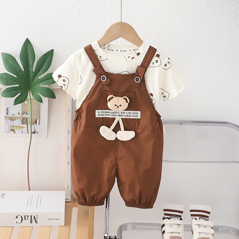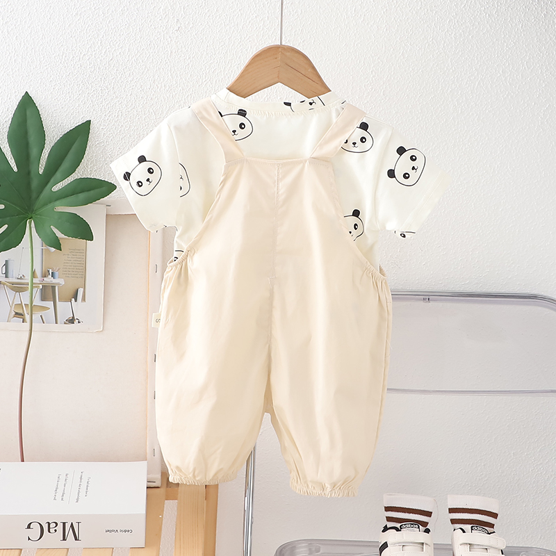 男童夏装套装洋气纯棉1一2岁宝宝短袖分体衣服婴幼儿背带裤两件套
