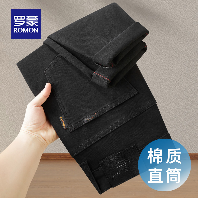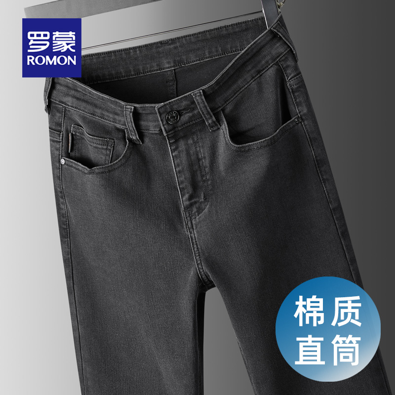 罗蒙高端灰色牛仔裤男士秋季新款透气中年商务休闲合体直筒长裤子