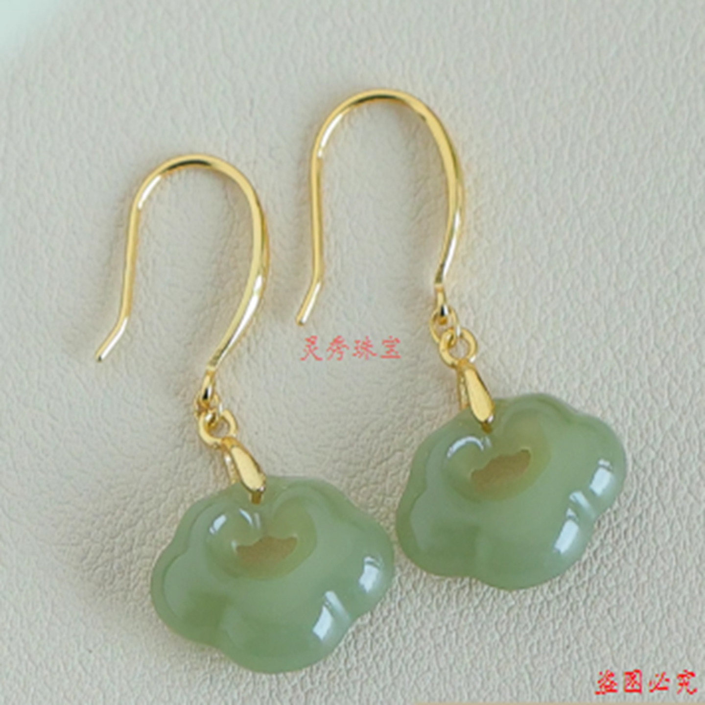 和田玉如意锁耳环纯银晴水青玉石耳坠女高级感新中式绿色耳饰