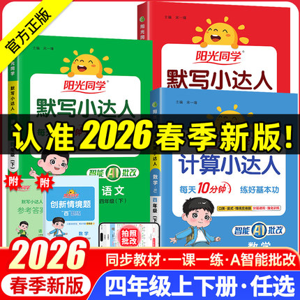 2026春阳光同学默写计算小达人四年级上册下册人教青岛北师大版小学专项同步训练习题思维训练题计算能手数学口算题卡应用题天天练