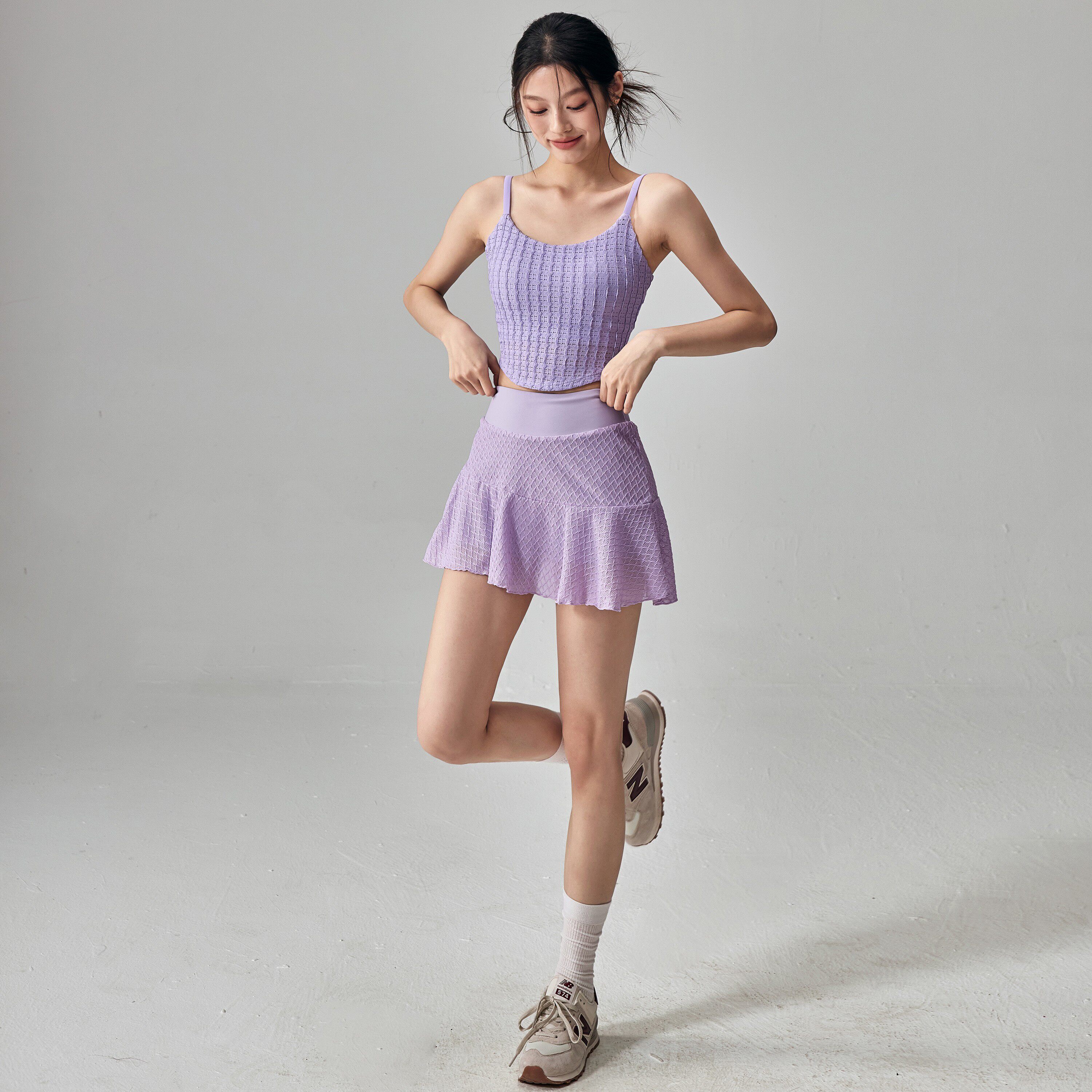 瑜伽服套装女高级感带胸垫运动背心防走光网球裙普拉提训练两件套