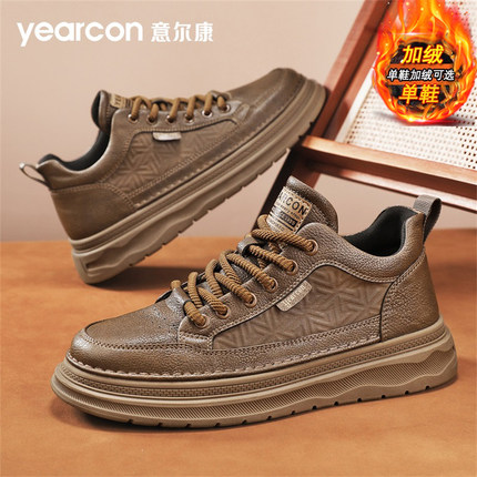意尔康男鞋2026新款冬季爆款加绒棉鞋潮百搭板鞋男士商务休闲皮鞋