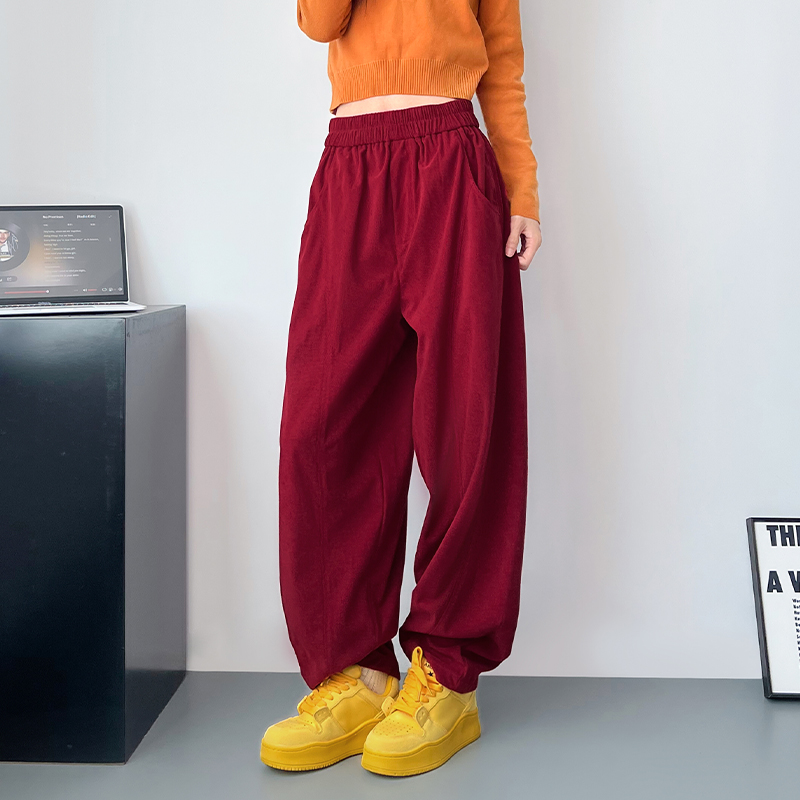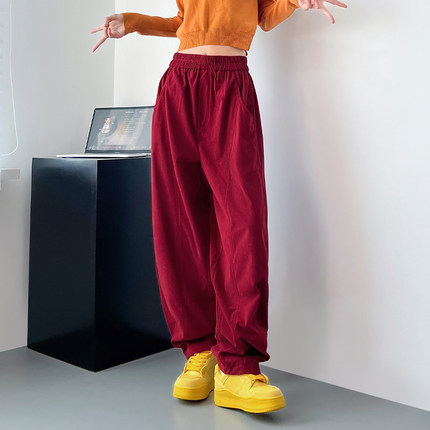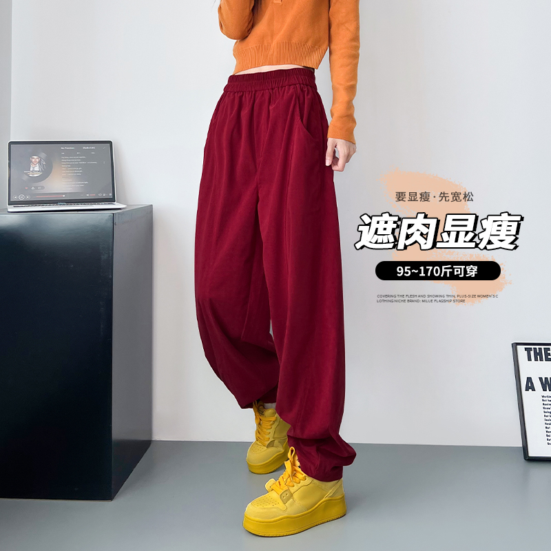 大码灯芯绒哈伦裤女2024秋胖mm显瘦运动裤子安哥拉红高腰休闲卫裤
