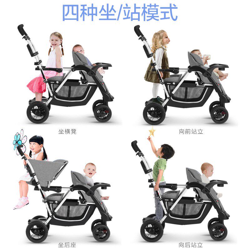 神马二胎大小孩双人双胞t胎带踏板手推车婴儿推车前后座轻便推车
