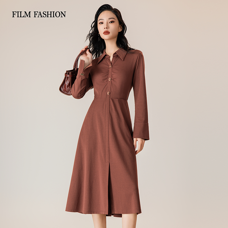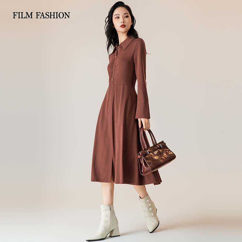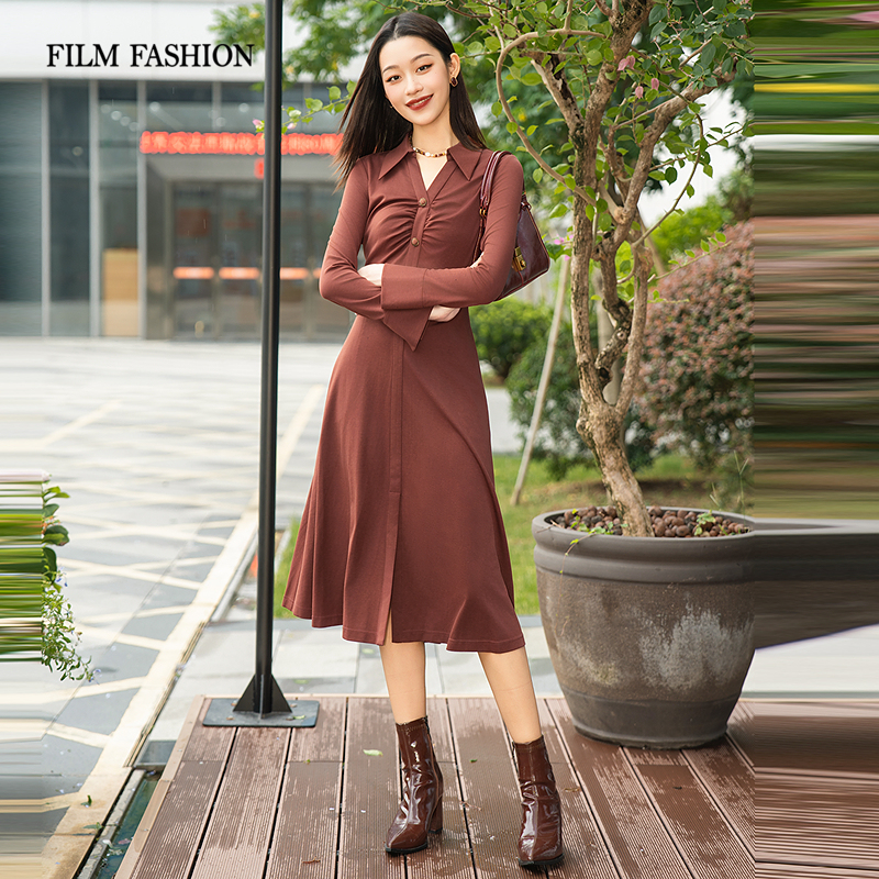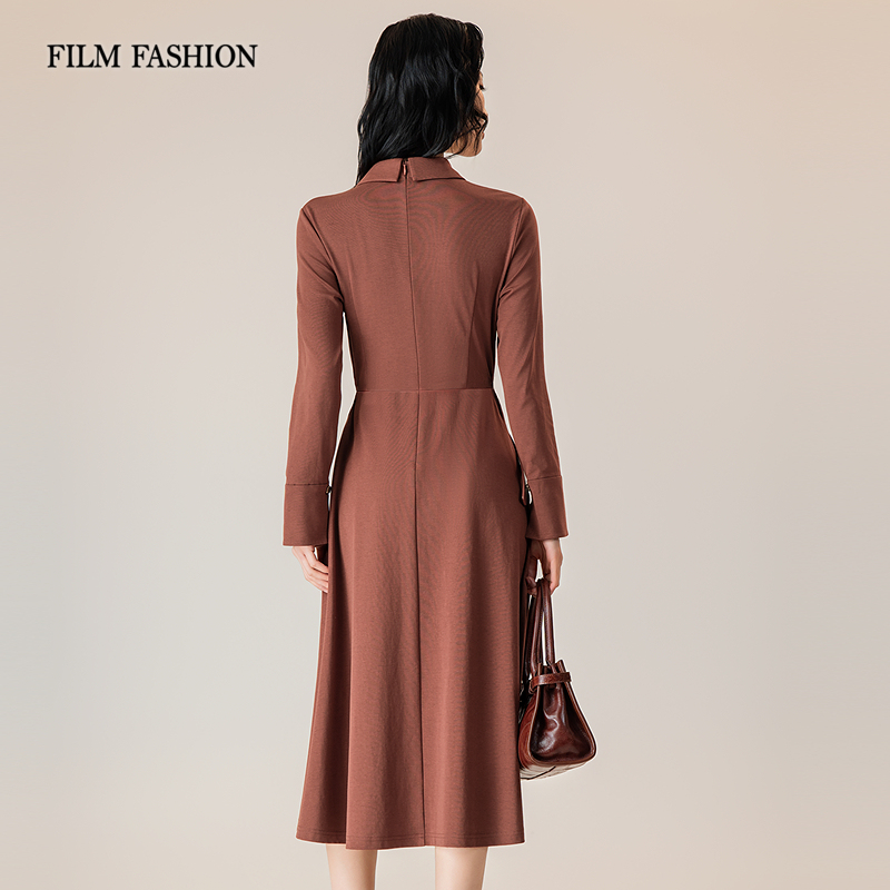 一电影一时装冬季新款针织连衣裙高级流行女撞色好看长袖气质法式