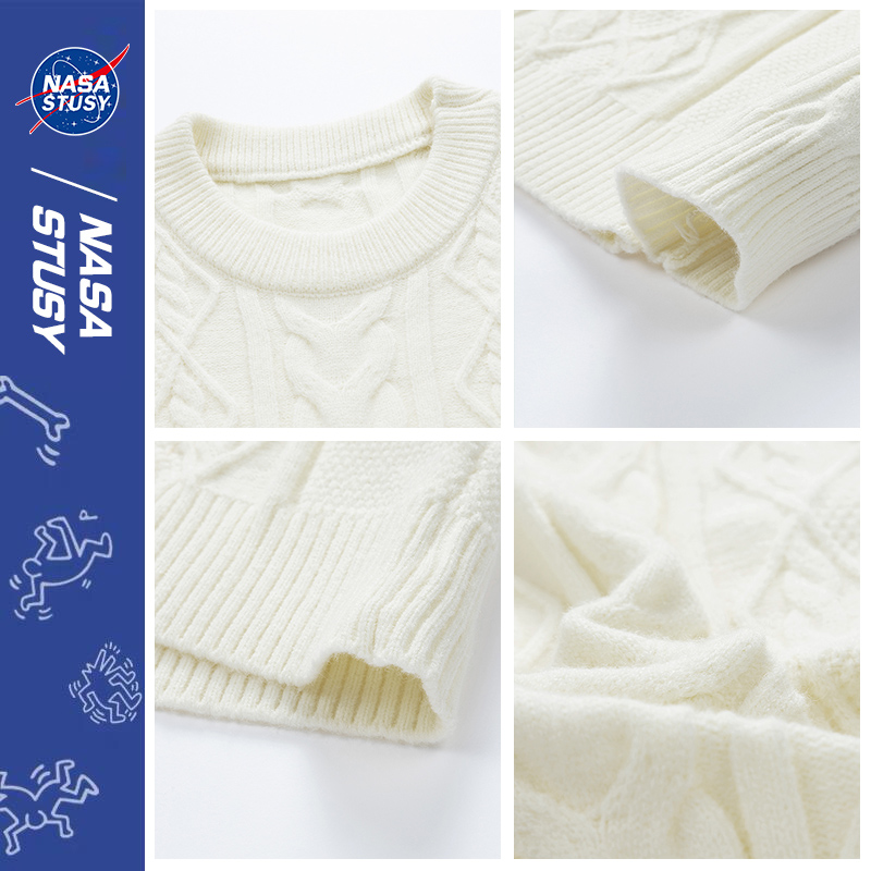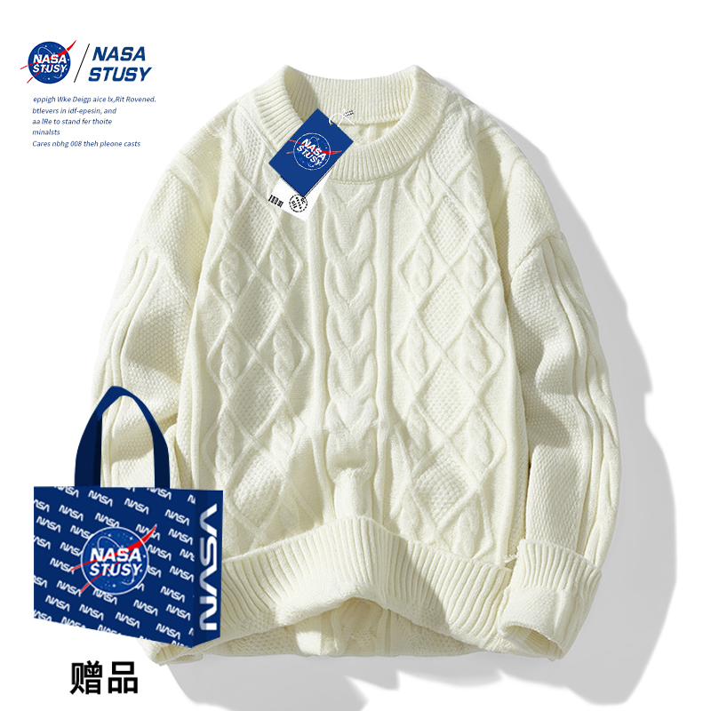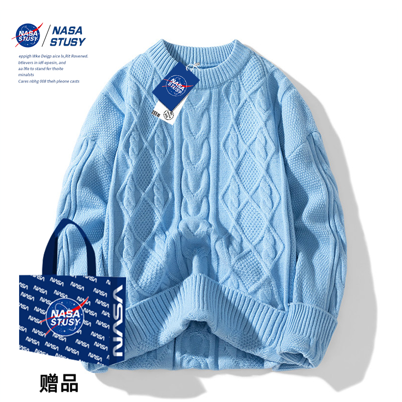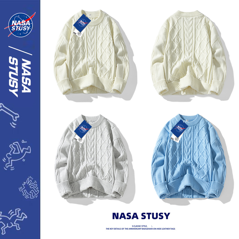 NASA STUSY美式高街2025新款冬装男款针织衫情侣加绒潮牌毛衣