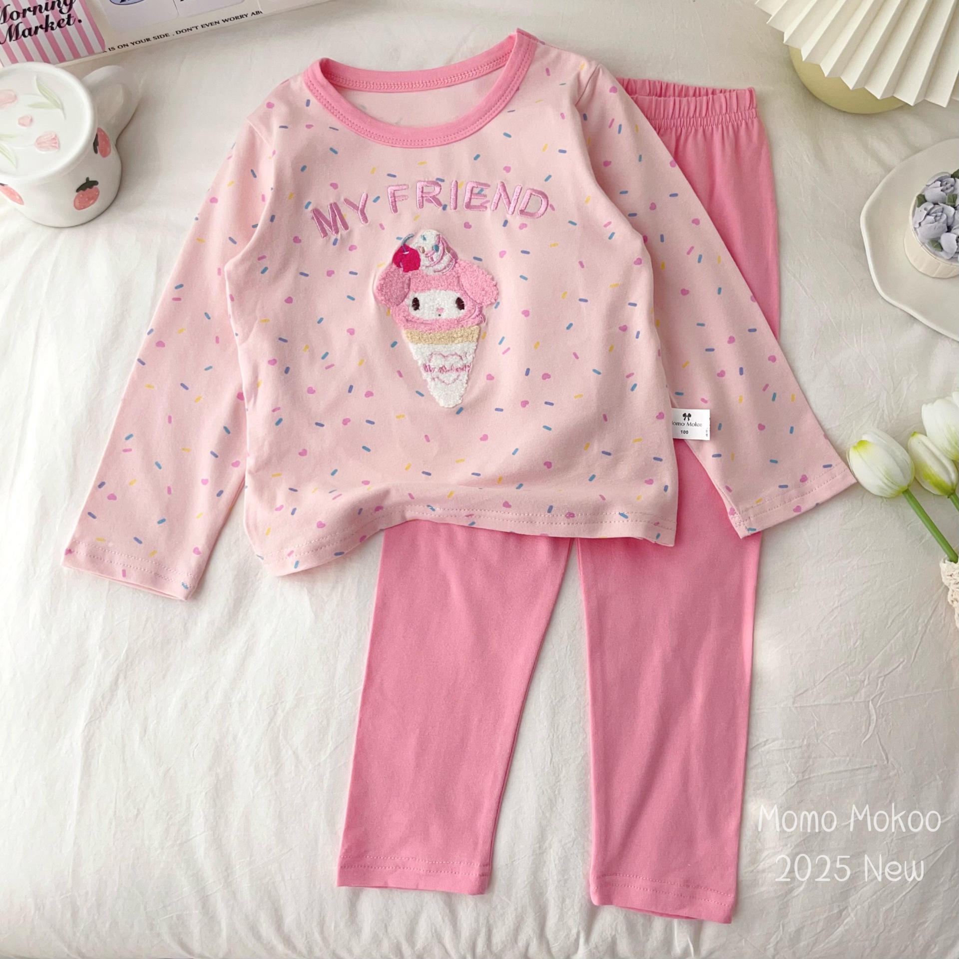 儿童纯棉长袖长裤家居服套装男女童三丽鸥刺绣秋衣秋裤薄款睡衣
