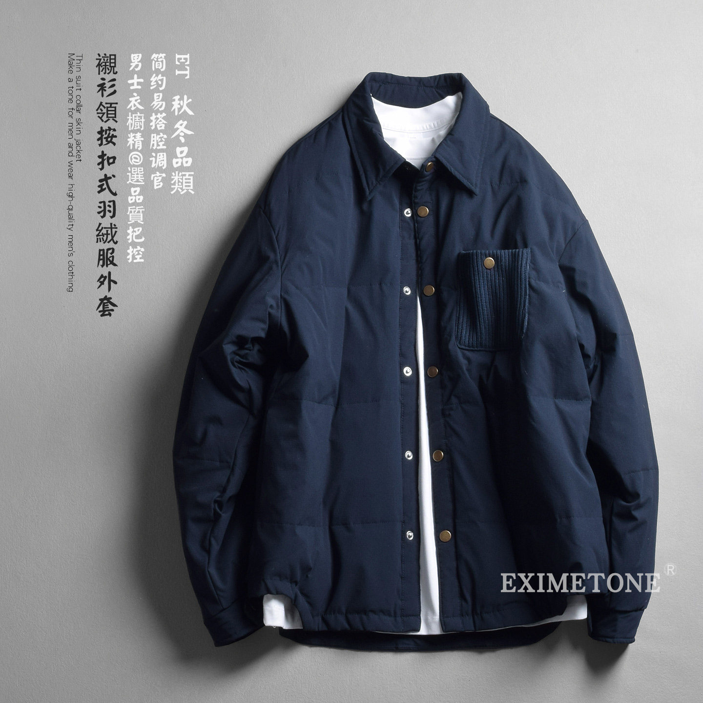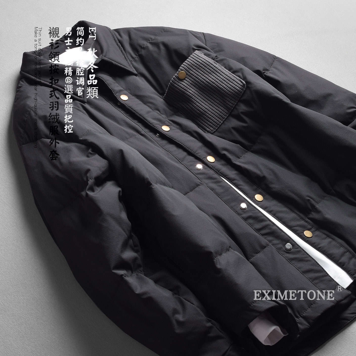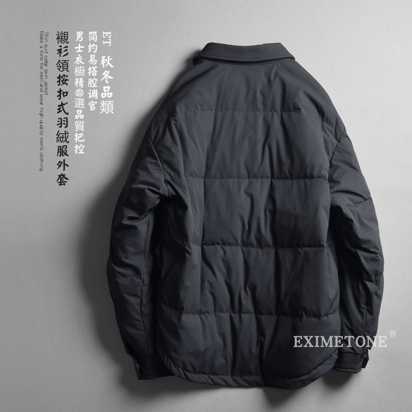 男士衬衫领按扣羽绒服2025冬季宽松休闲轻薄款翻领工装白鸭绒外套
